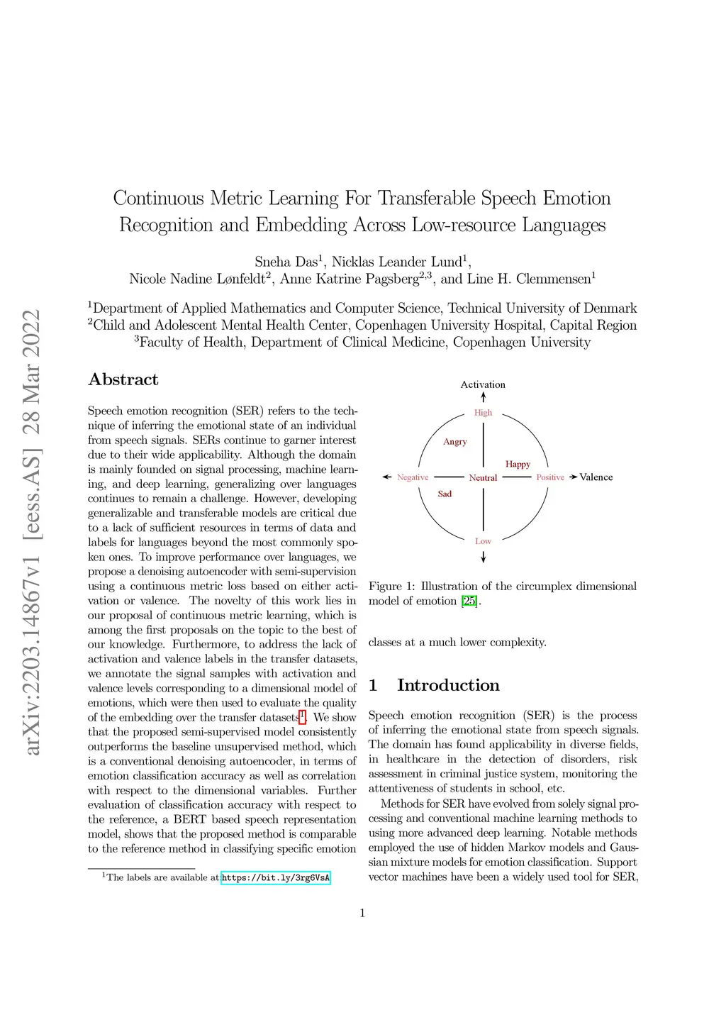Speech emotion recognition~(SER) refers to the technique of inferring the emotional state of an individual from speech signals. SERs continue to garner interest due to their wide applicability. Although the domain is mainly founded on signal processing, machine learning, and deep learning, generalizing over languages continues to remain a challenge. However, developing generalizable and transferable models are critical due to a lack of sufficient resources in terms of data and labels for languages beyond the most commonly spoken ones. To improve performance over languages, we propose a denoising autoencoder with semi-supervision using a continuous metric loss based on either activation or valence. The novelty of this work lies in our proposal of continuous metric learning, which is among the first proposals on the topic to the best of our knowledge. Furthermore, to address the lack of activation and valence labels in the transfer datasets, we annotate the signal samples with activation and valence levels corresponding to a dimensional model of emotions, which were then used to evaluate the quality of the embedding over the transfer datasets. We show that the proposed semi-supervised model consistently outperforms the baseline unsupervised method, which is a conventional denoising autoencoder, in terms of emotion classification accuracy as well as correlation with respect to the dimensional variables. Further evaluation of classification accuracy with respect to the reference, a BERT based speech representation model, shows that the proposed method is comparable to the reference method in classifying specific emotion classes at a much lower complexity.