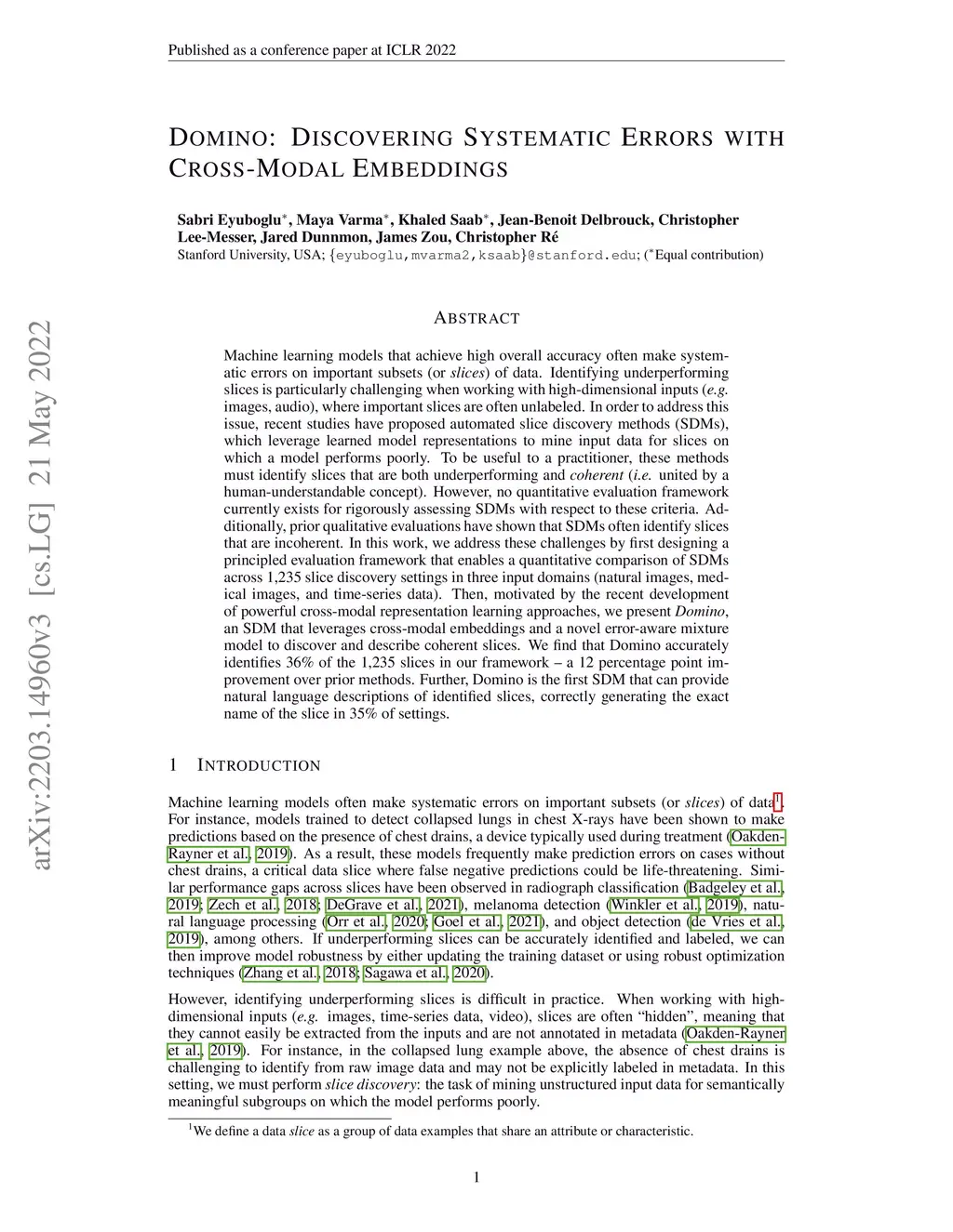 Domino: Discovering Systematic Errors with Cross-Modal Embeddings