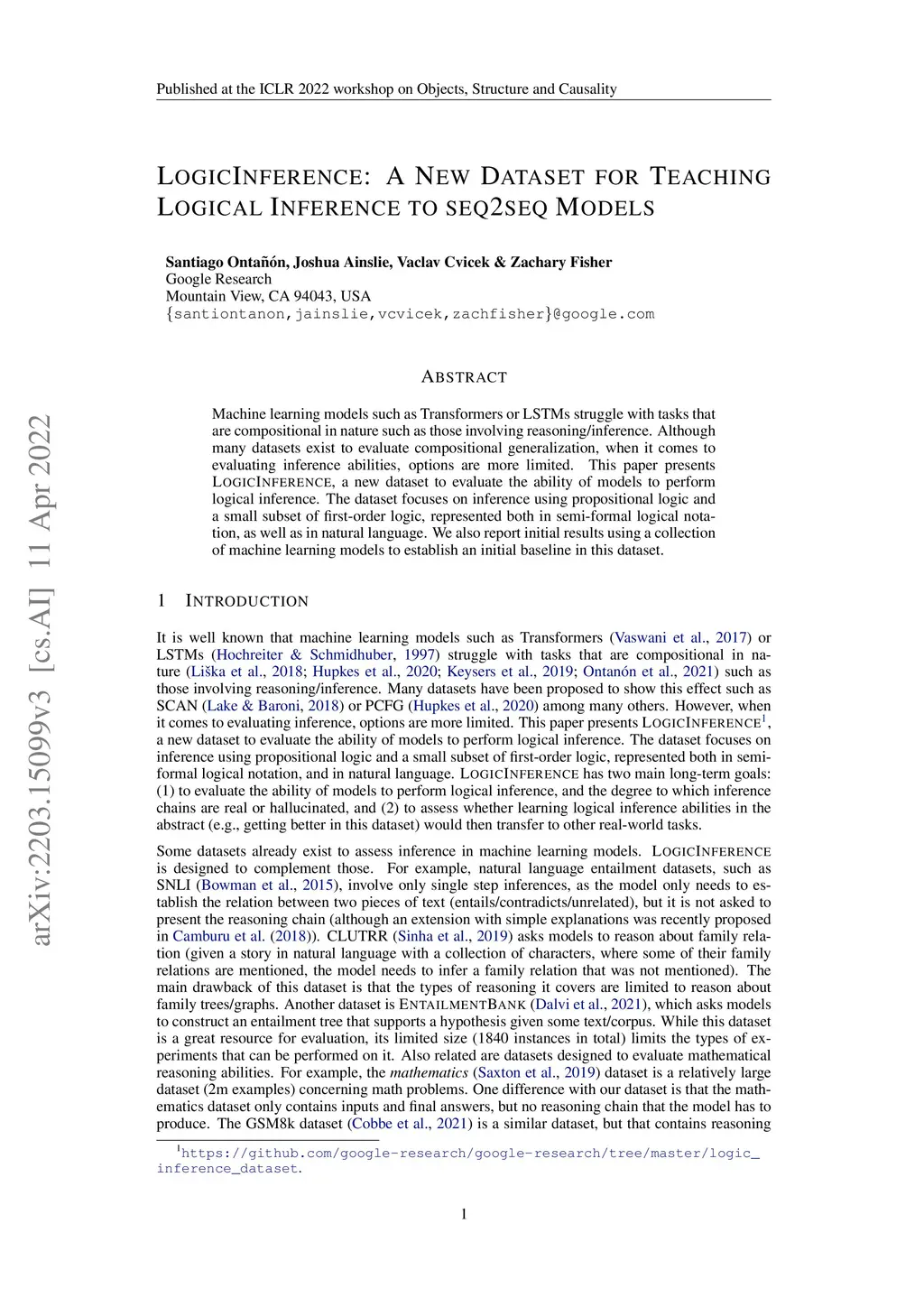 LogicInference: A New Dataset for Teaching Logical Inference to seq2seq