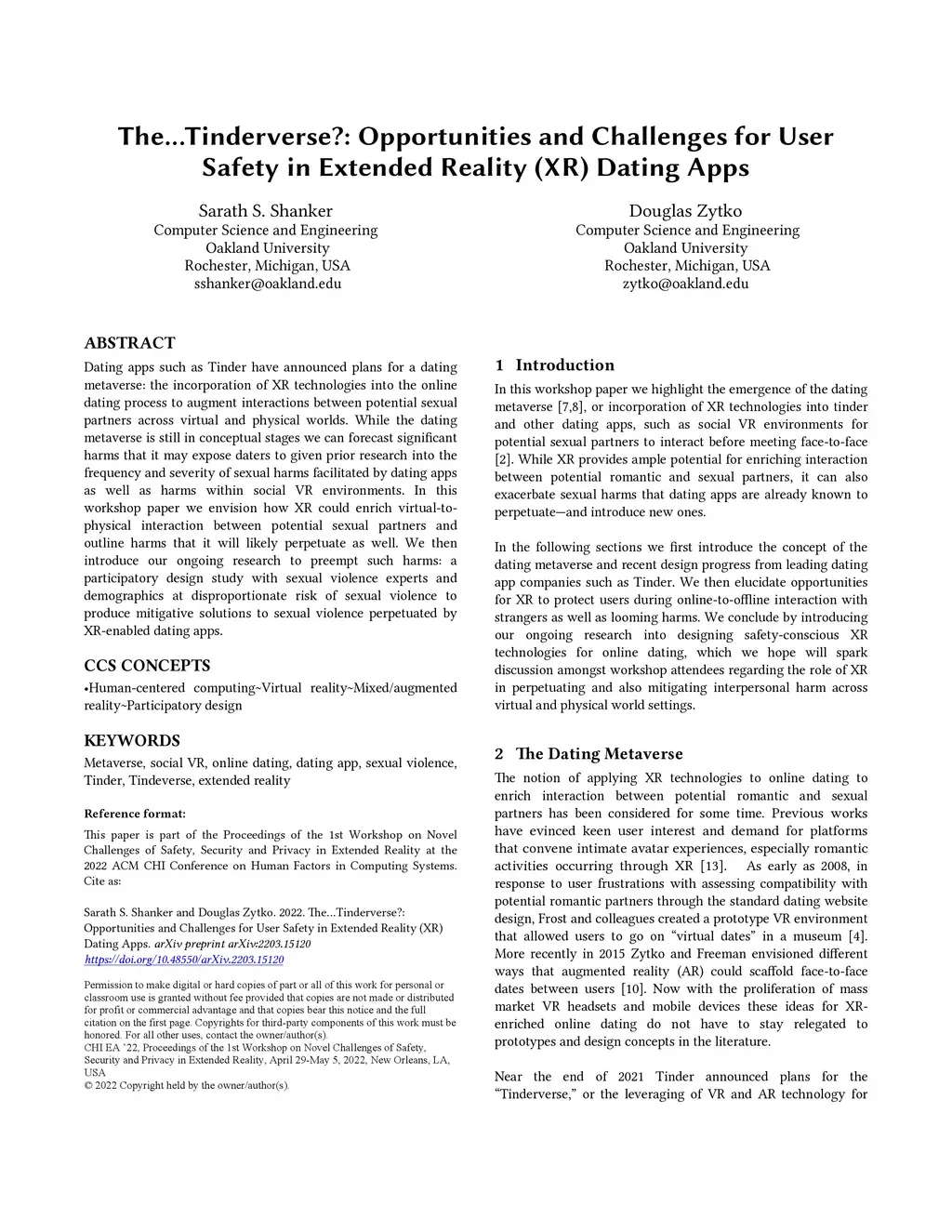 Dating apps such as Tinder have announced plans for a dating metaverse: the incorporation of XR technologies into the online dating process to augment interactions between potential sexual partners across virtual and physical worlds. While the dating metaverse is still in conceptual stages we can forecast significant harms that it may expose daters to given prior research into the frequency and severity of sexual harms facilitated by dating apps as well as harms within social VR environments. In this workshop paper we envision how XR could enrich virtual-to-physical interaction between potential sexual partners and outline harms that it will likely perpetuate as well. We then introduce our ongoing research to preempt such harms: a participatory design study with sexual violence experts and demographics at disproportionate risk of sexual violence to produce mitigative solutions to sexual violence perpetuated by XR-enabled dating apps.