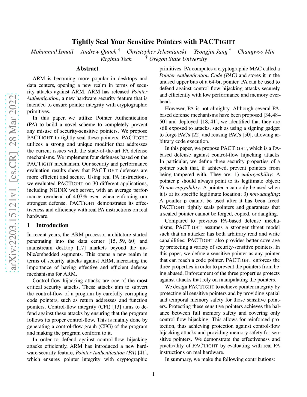 ARM is becoming more popular in desktops and data centers, opening a new realm in terms of security attacks against ARM. ARM has released Pointer Authentication, a new hardware security feature that is intended to ensure pointer integrity with cryptographic primitives. In this paper, we utilize Pointer Authentication (PA) to build a novel scheme to completely prevent any misuse of security-sensitive pointers. We propose PACTight to tightly seal these pointers. PACTight utilizes a strong and unique modifier that addresses the current issues with the state-of-the-art PA defense mechanisms. We implement four defenses based on the PACTight mechanism. Our security and performance evaluation results show that PACTight defenses are more efficient and secure. Using real PA instructions, we evaluated PACTight on 30 different applications, including NGINX web server, with an average performance overhead of 4.07% even when enforcing our strongest defense. PACTight demonstrates its effectiveness and efficiency with real PA instructions on real hardware.