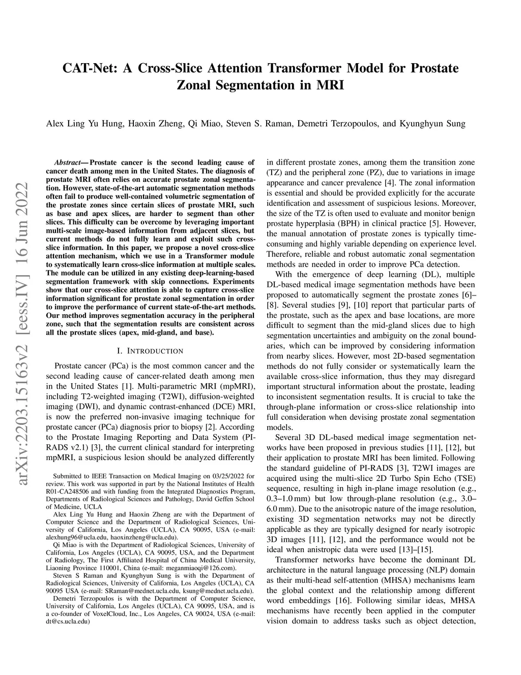 CAT-Net: A Cross-Slice Attention Transformer Model for Prostate Zonal