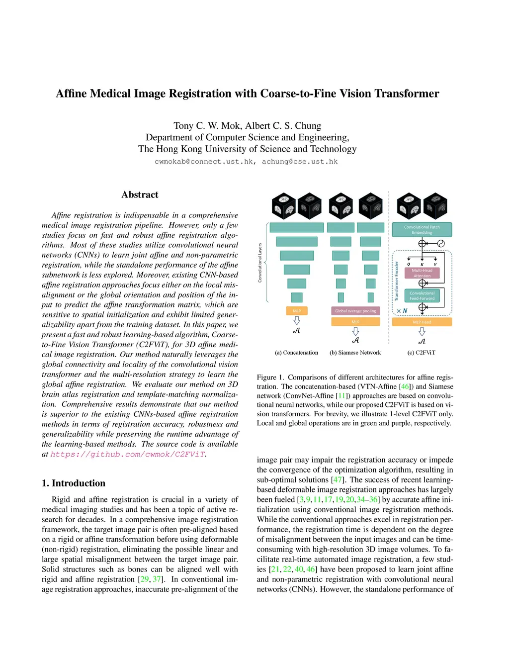 Affine Medical Image Registration with Coarse-to-Fine Vision Transformer