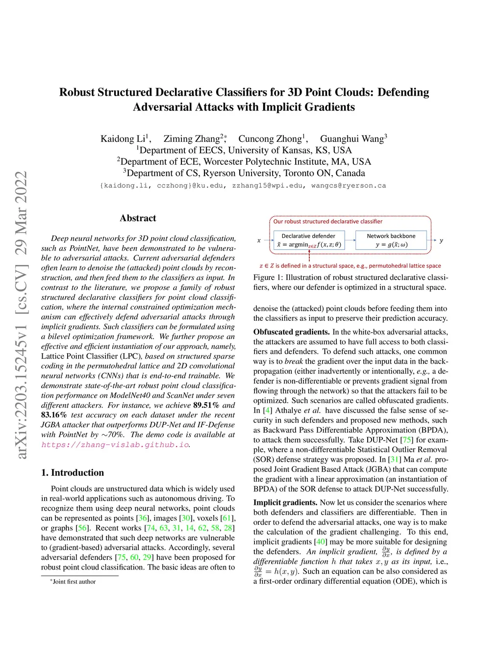 Robust Structured Declarative Classifiers for 3D Point Clouds: Defending