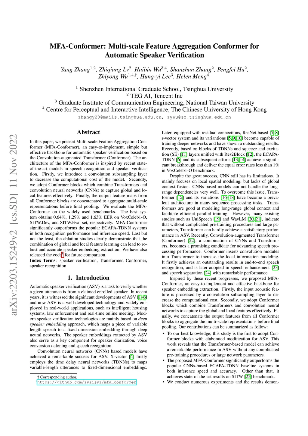 MFA-Conformer: Multi-scale Feature Aggregation Conformer for Automatic