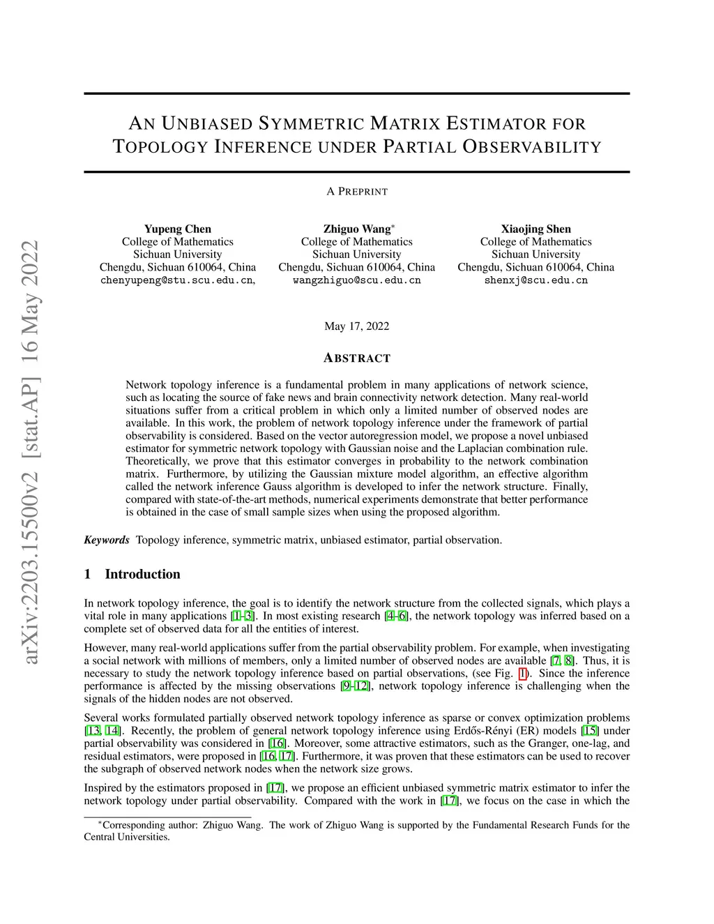 An Unbiased Symmetric Matrix Estimator for Topology Inference under