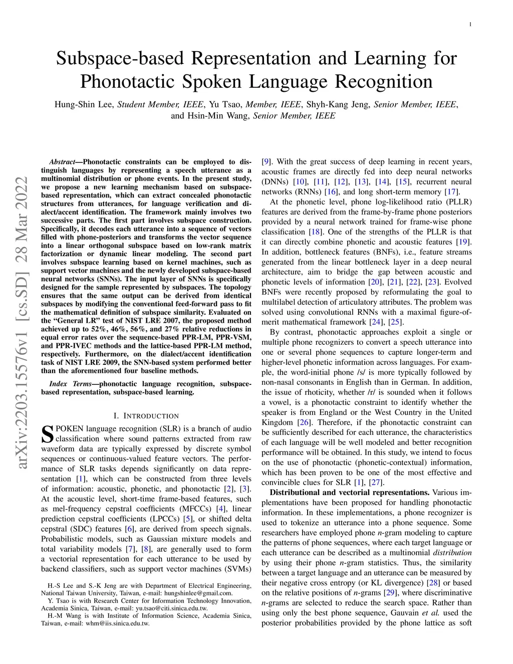 Subspace-based Representation and Learning for Phonotactic Spoken