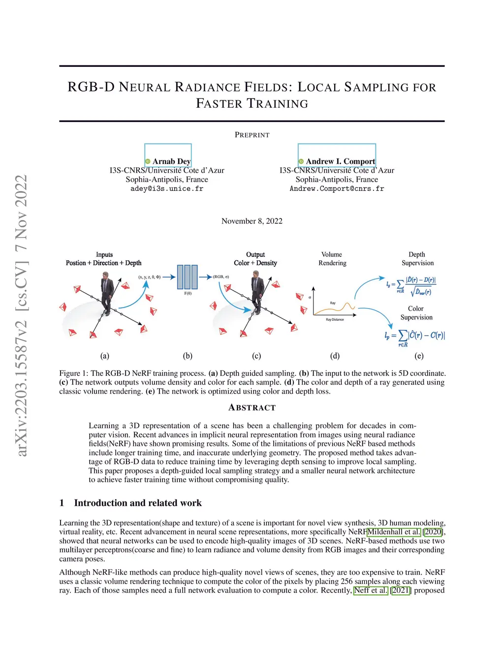 Learning a 3D representation of a scene has been a challenging problem for decades in computer vision. Recent advances in implicit neural representation from images using neural radiance fields(NeRF) have shown promising results. Some of the limitations of previous NeRF based methods include longer training time, and inaccurate underlying geometry. The proposed method takes advantage of RGB-D data to reduce training time by leveraging depth sensing to improve local sampling. This paper proposes a depth-guided local sampling strategy and a smaller neural network architecture to achieve faster training time without compromising quality.