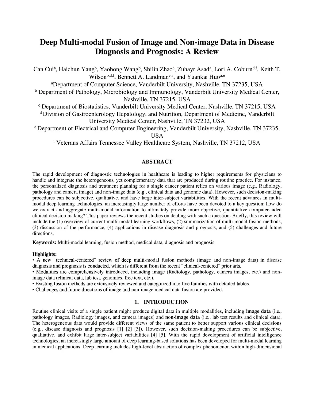 The rapid development of diagnostic technologies in healthcare is leading to higher requirements for physicians to handle and integrate the heterogeneous, yet complementary data that are produced during routine practice. For instance, the personalized diagnosis and treatment planning for a single cancer patient relies on the various images (e.g., radiological, pathological, and camera images) and non-image data (e.g., clinical data and genomic data). However, such decision-making procedures can be subjective, qualitative, and have large inter-subject variabilities. With the recent advances in multi-modal deep learning technologies, an increasingly large number of efforts have been devoted to a key question: how do we extract and aggregate multi-modal information to ultimately provide more objective, quantitative computer-aided clinical decision making? This paper reviews the recent studies on dealing with such a question. Briefly, this review will include the (1) overview of current multi-modal learning workflows, (2) summarization of multi-modal fusion methods, (3) discussion of the performance, (4) applications in disease diagnosis and prognosis, and (5) challenges and future directions.