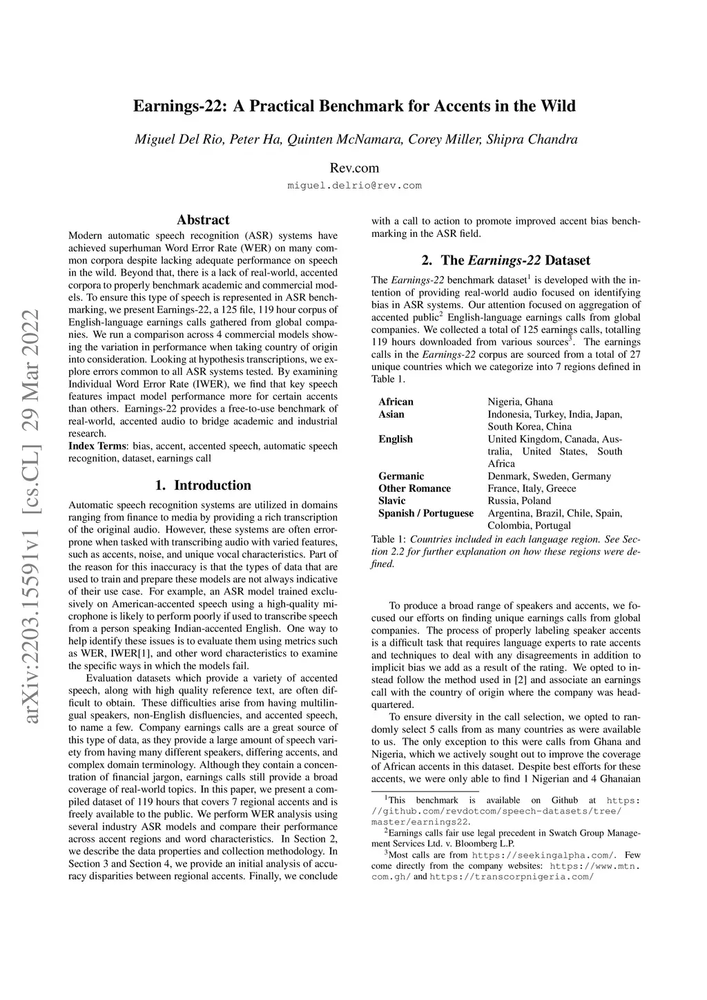 Earnings-22: A Practical Benchmark for Accents in the Wild