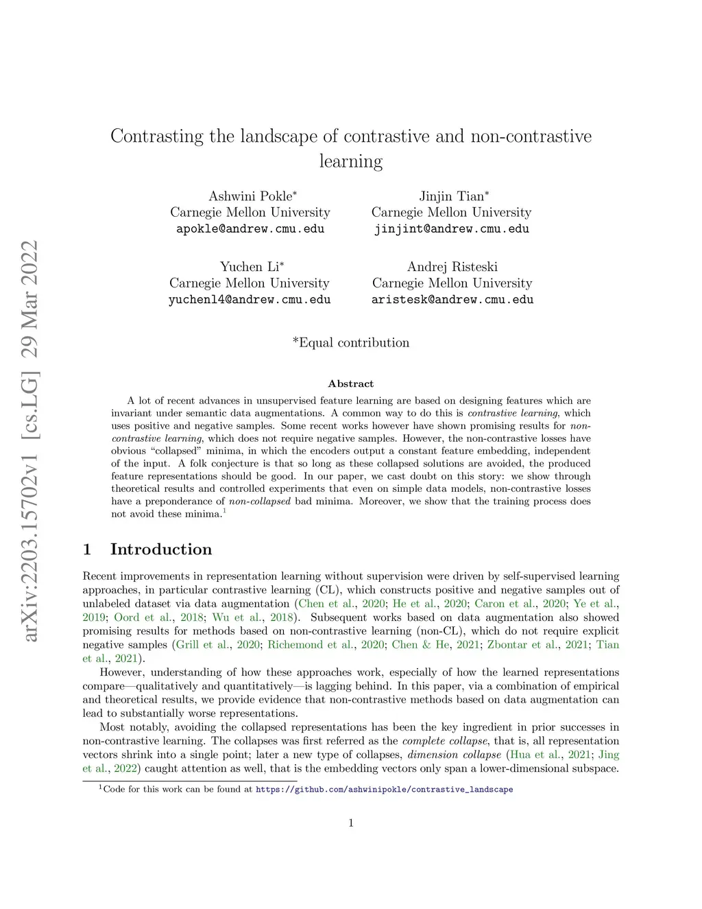 Contrasting the landscape of contrastive and non-contrastive learning