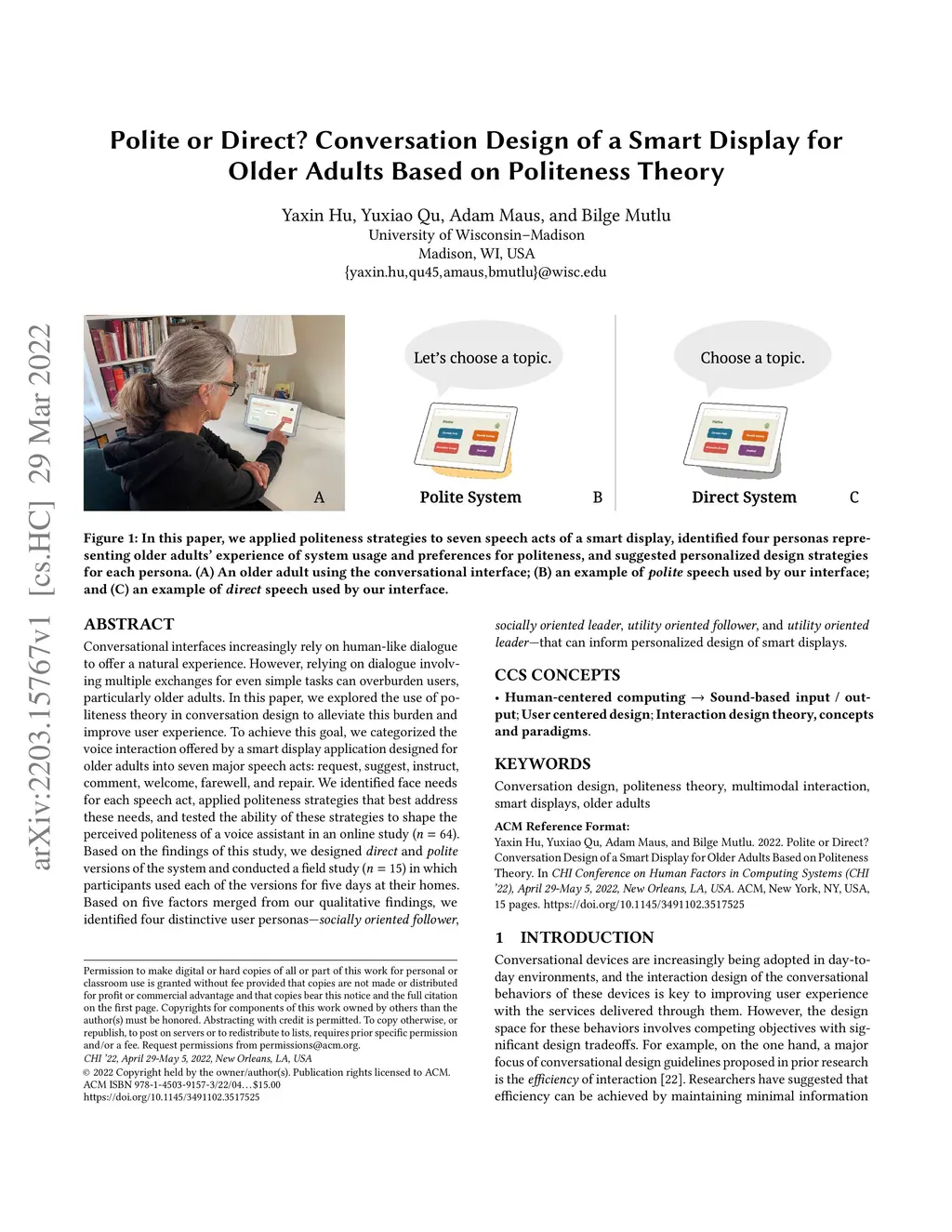 Polite or Direct? Conversation Design of a Smart Display for Older