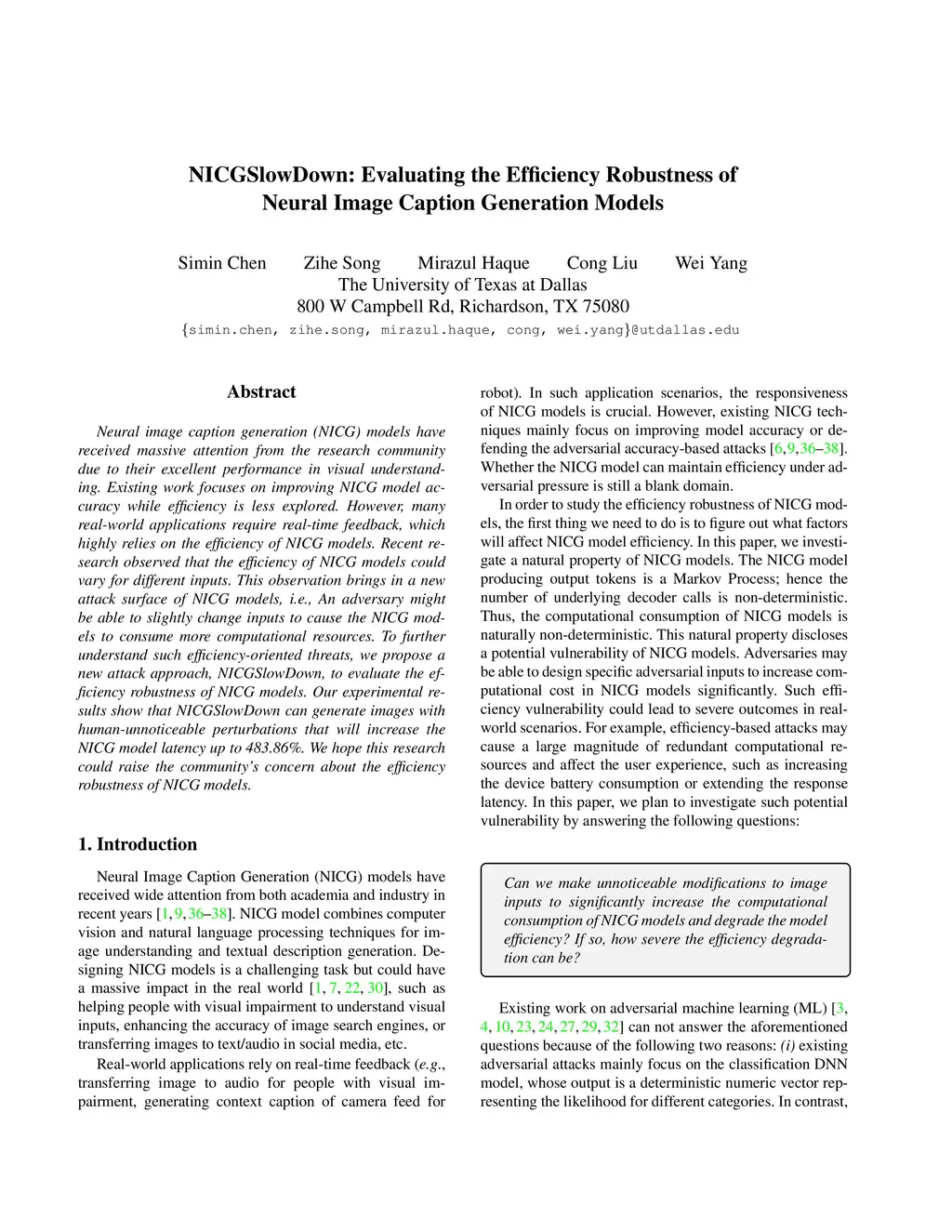 NICGSlowDown: Evaluating the Efficiency Robustness of Neural Image