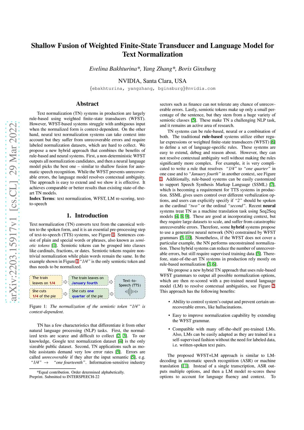 Text normalization (TN) systems in production are largely rule-based using weighted finite-state transducers (WFST). However, WFST-based systems struggle with ambiguous input when the normalized form is context-dependent. On the other hand, neural text normalization systems can take context into account but they suffer from unrecoverable errors and require labeled normalization datasets, which are hard to collect. We propose a new hybrid approach that combines the benefits of rule-based and neural systems. First, a non-deterministic WFST outputs all normalization candidates, and then a neural language model picks the best one -- similar to shallow fusion for automatic speech recognition. While the WFST prevents unrecoverable errors, the language model resolves contextual ambiguity. The approach is easy to extend and we show it is effective. It achieves comparable or better results than existing state-of-the-art TN models.