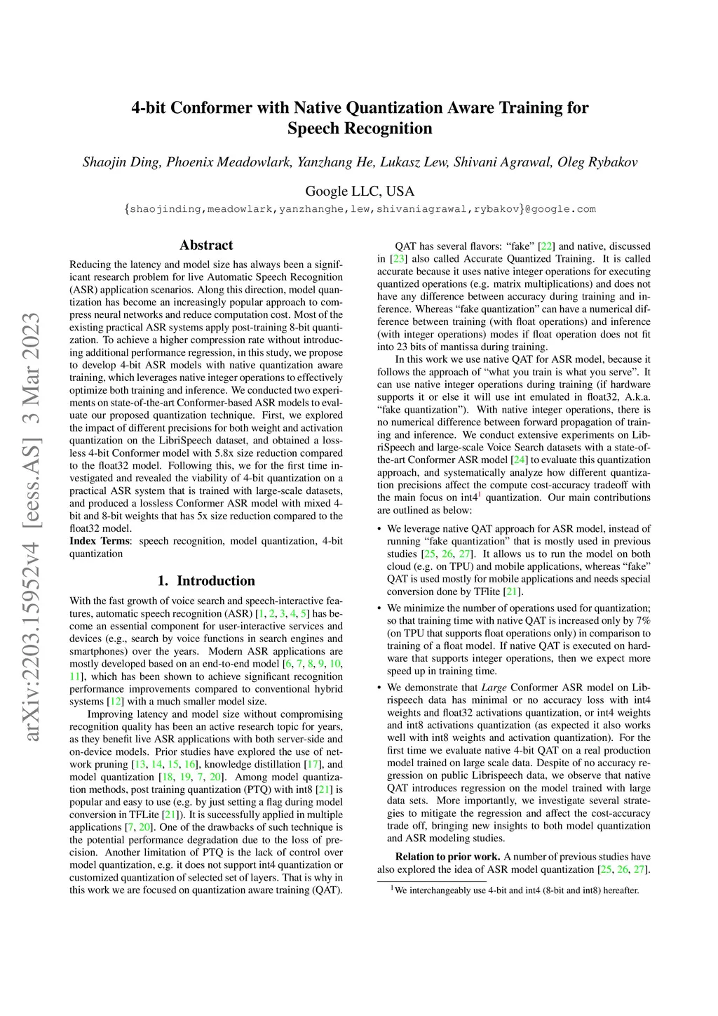 4-bit Conformer with Native Quantization Aware Training for Speech