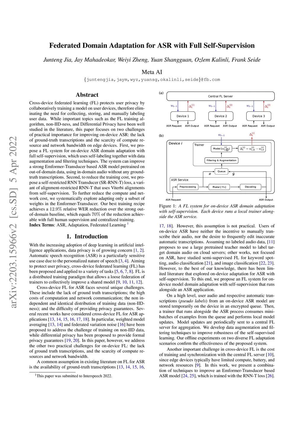Federated Domain Adaptation for ASR with Full Self-Supervision