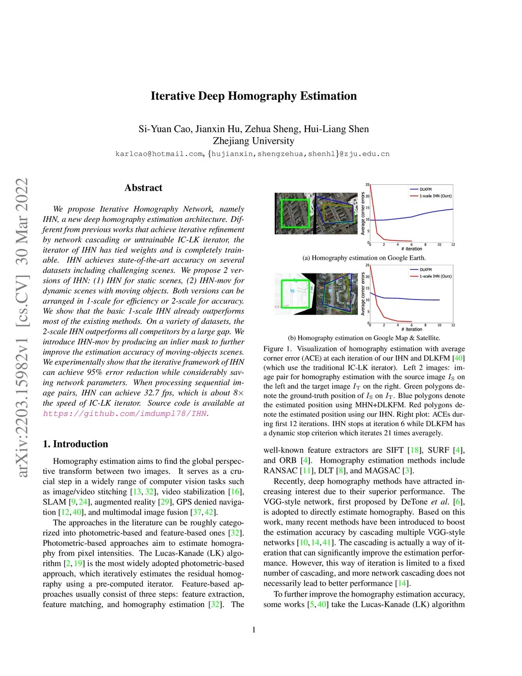 We propose Iterative Homography Network, namely IHN, a new deep homography estimation architecture. Different from previous works that achieve iterative refinement by network cascading or untrainable IC-LK iterator, the iterator of IHN has tied weights and is completely trainable. IHN achieves state-of-the-art accuracy on several datasets including challenging scenes. We propose 2 versions of IHN: (1) IHN for static scenes, (2) IHN-mov for dynamic scenes with moving objects. Both versions can be arranged in 1-scale for efficiency or 2-scale for accuracy. We show that the basic 1-scale IHN already outperforms most of the existing methods. On a variety of datasets, the 2-scale IHN outperforms all competitors by a large gap. We introduce IHN-mov by producing an inlier mask to further improve the estimation accuracy of moving-objects scenes. We experimentally show that the iterative framework of IHN can achieve 95% error reduction while considerably saving network parameters. When processing sequential image pairs, IHN can achieve 32.7 fps, which is about 8x the speed of IC-LK iterator. Source code is available at https://github.com/imdumpl78/IHN.