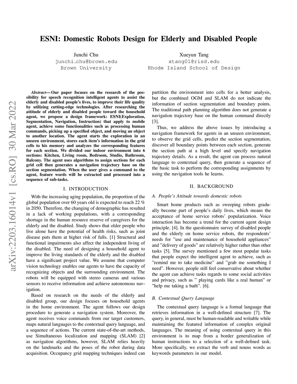 ESNI: Domestic Robots Design for Elderly and Disabled People