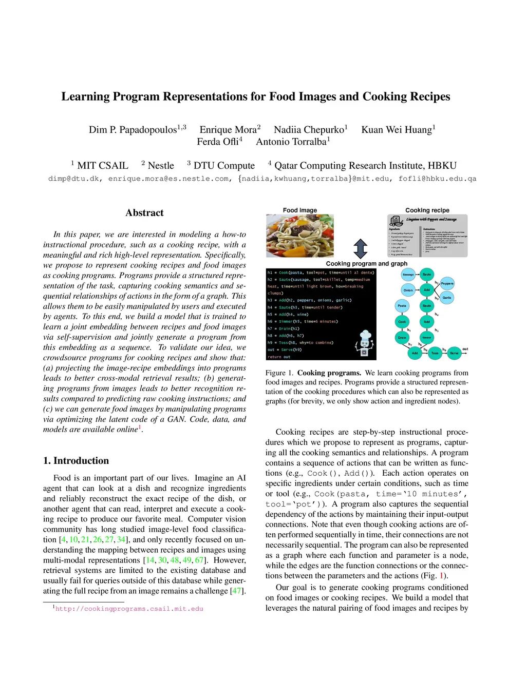 Learning Program Representations for Food Images and Cooking Recipes