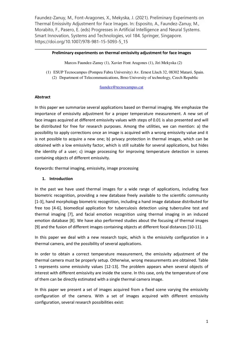 In this paper we summarize several applications based on thermal imaging. We emphasize the importance of emissivity adjustment for a proper temperature measurement. A new set of face images acquired at different emissivity values with steps of 0.01 is also presented and will be distributed for free for research purposes. Among the utilities, we can mention: a) the possibility to apply corrections once an image is acquired with a wrong emissivity value and it is not possible to acquire a new one; b) privacy protection in thermal images, which can be obtained with a low emissivity factor, which is still suitable for several applications, but hides the identity of a user; c) image processing for improving temperature detection in scenes containing objects of different emissivity.
