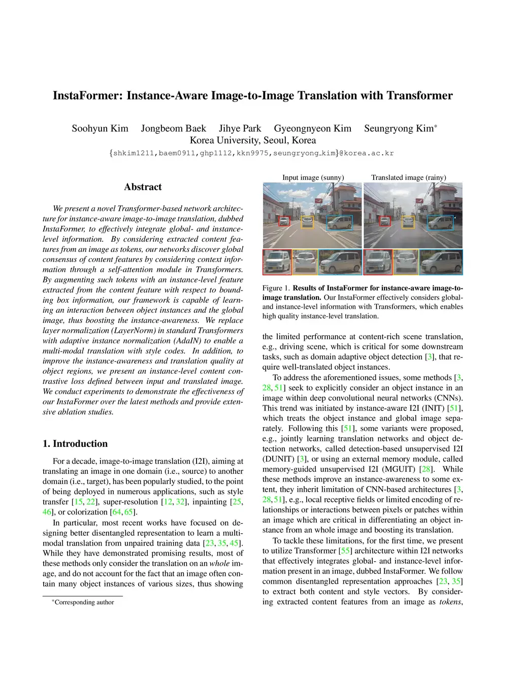 InstaFormer: Instance-Aware Image-to-Image Translation with Transformer
