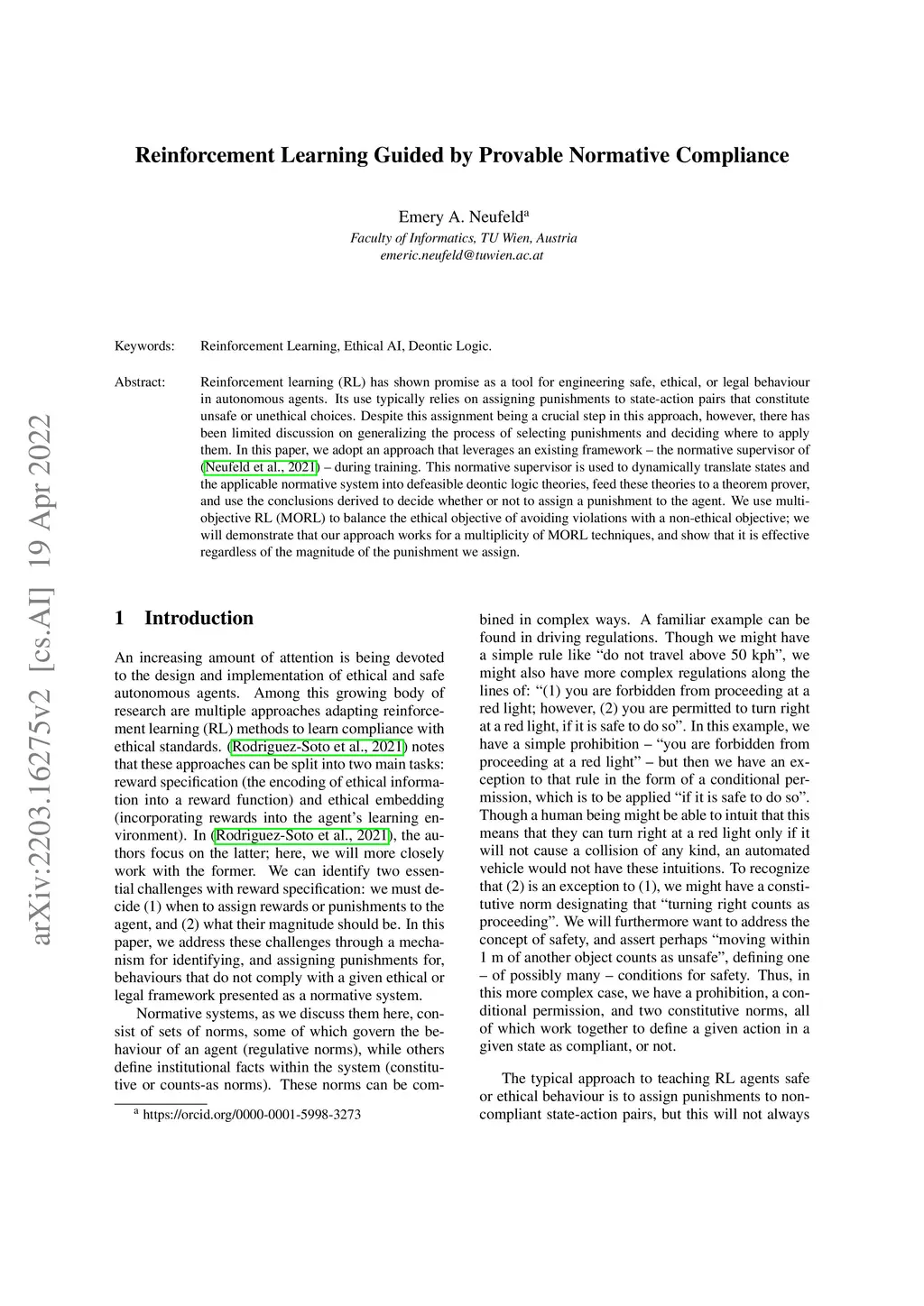 Reinforcement Learning Guided by Provable Normative Compliance