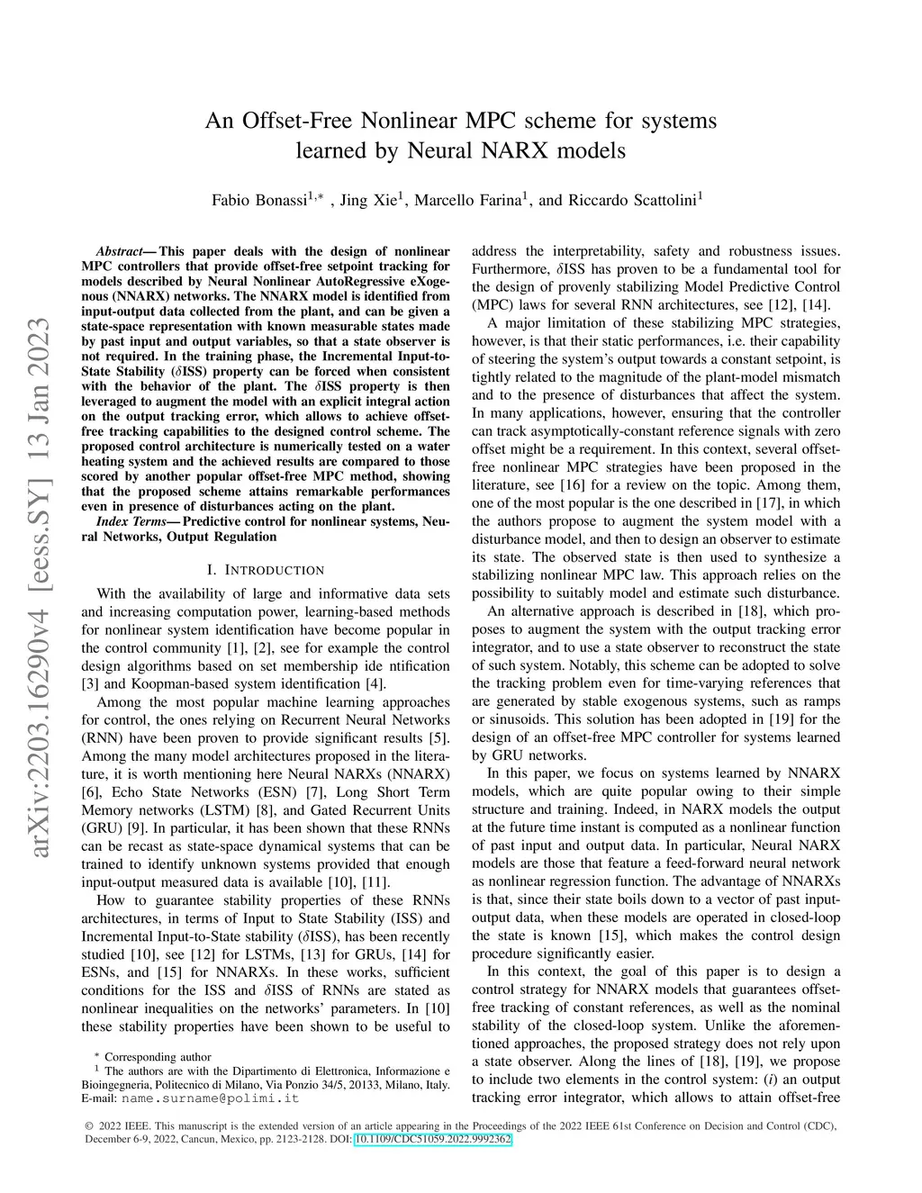 An Offset-Free Nonlinear MPC scheme for systems learned by Neural NARX