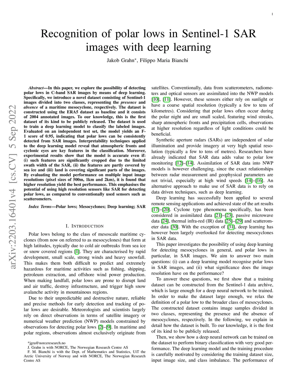 Recognition of polar lows in Sentinel-1 SAR images with deep learning