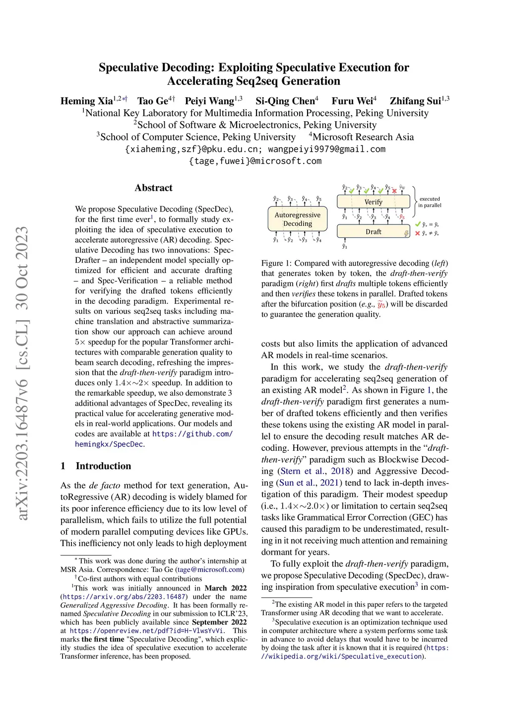 Speculative Decoding: Exploiting Speculative Execution for Accelerating