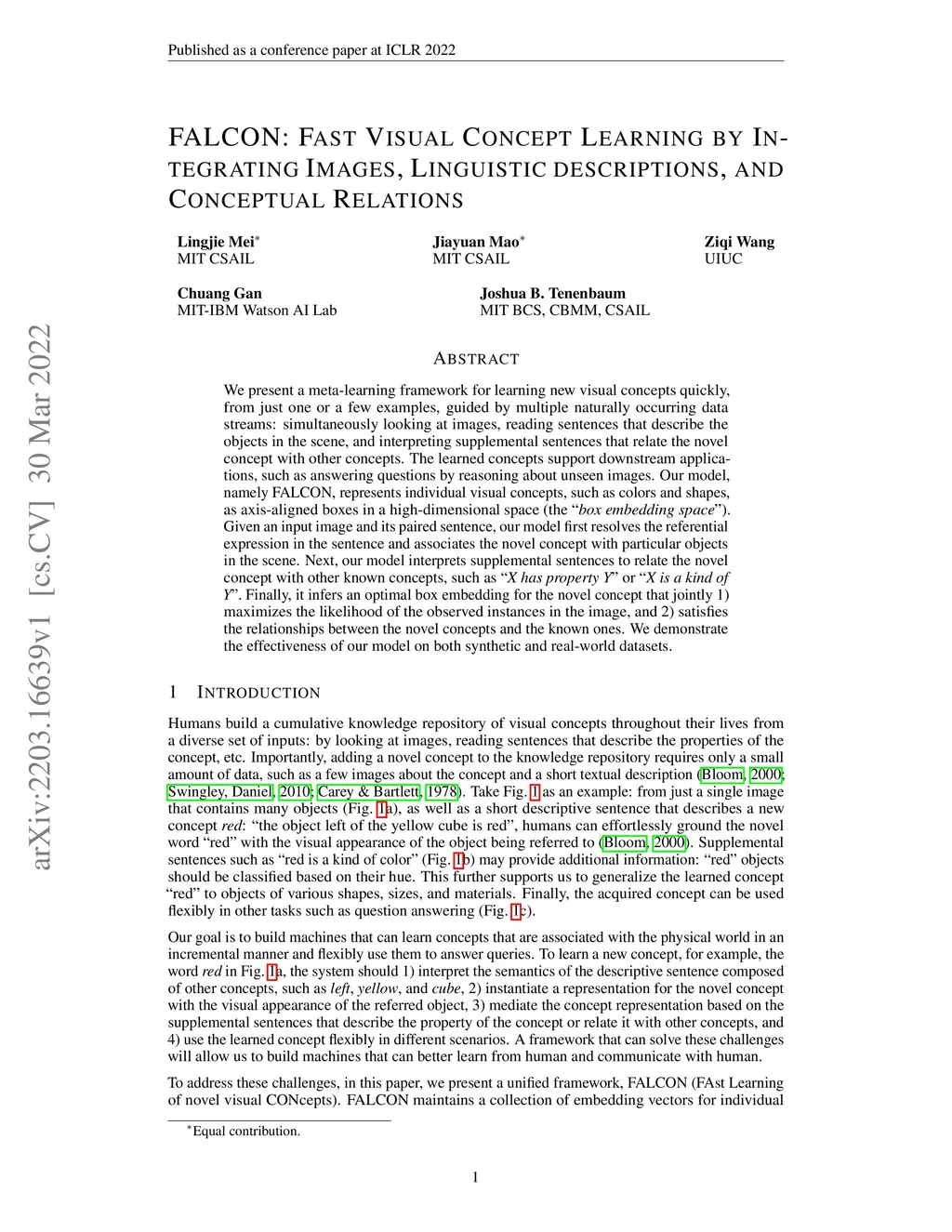 FALCON: Fast Visual Concept Learning by Integrating Images, Linguistic