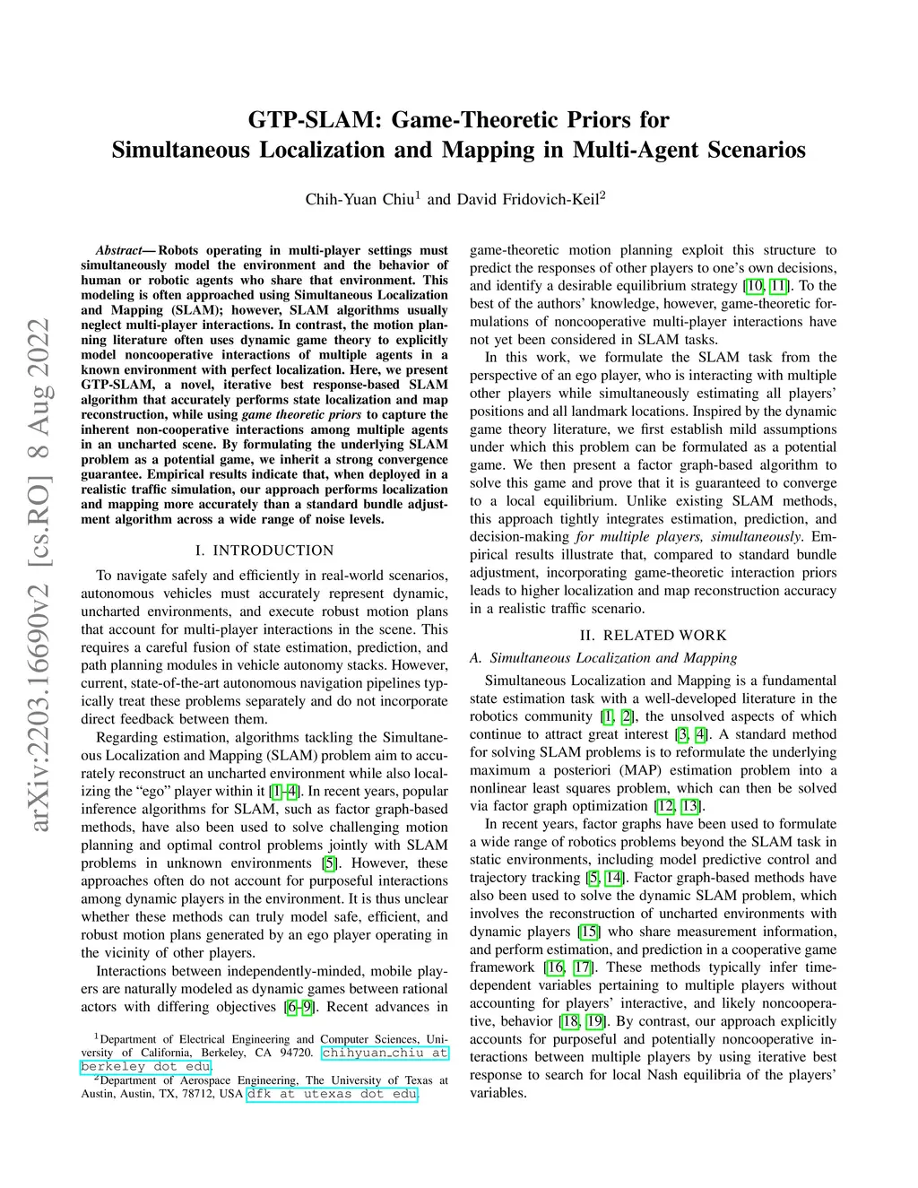 GTP-SLAM: Game-Theoretic Priors for Simultaneous Localization and