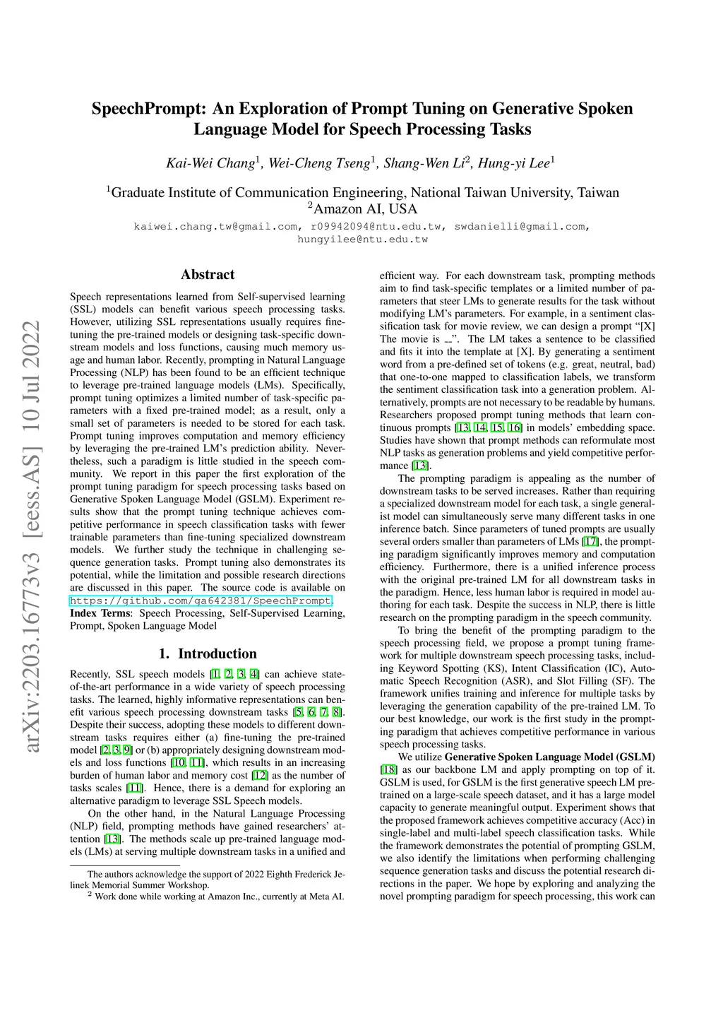 SpeechPrompt: An Exploration of Prompt Tuning on Generative Spoken