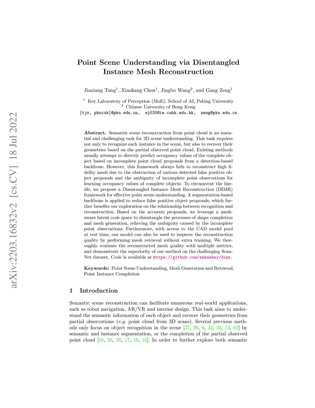 Point Scene Understanding via Disentangled Instance Mesh Reconstruction