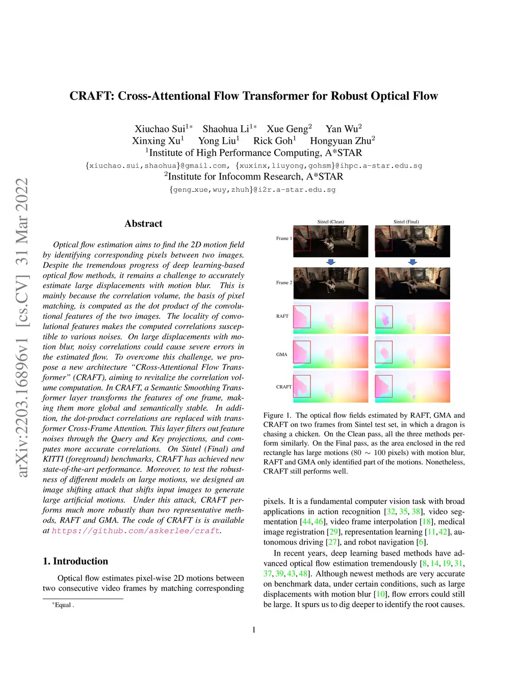 CRAFT: Cross-Attentional Flow Transformer for Robust Optical Flow