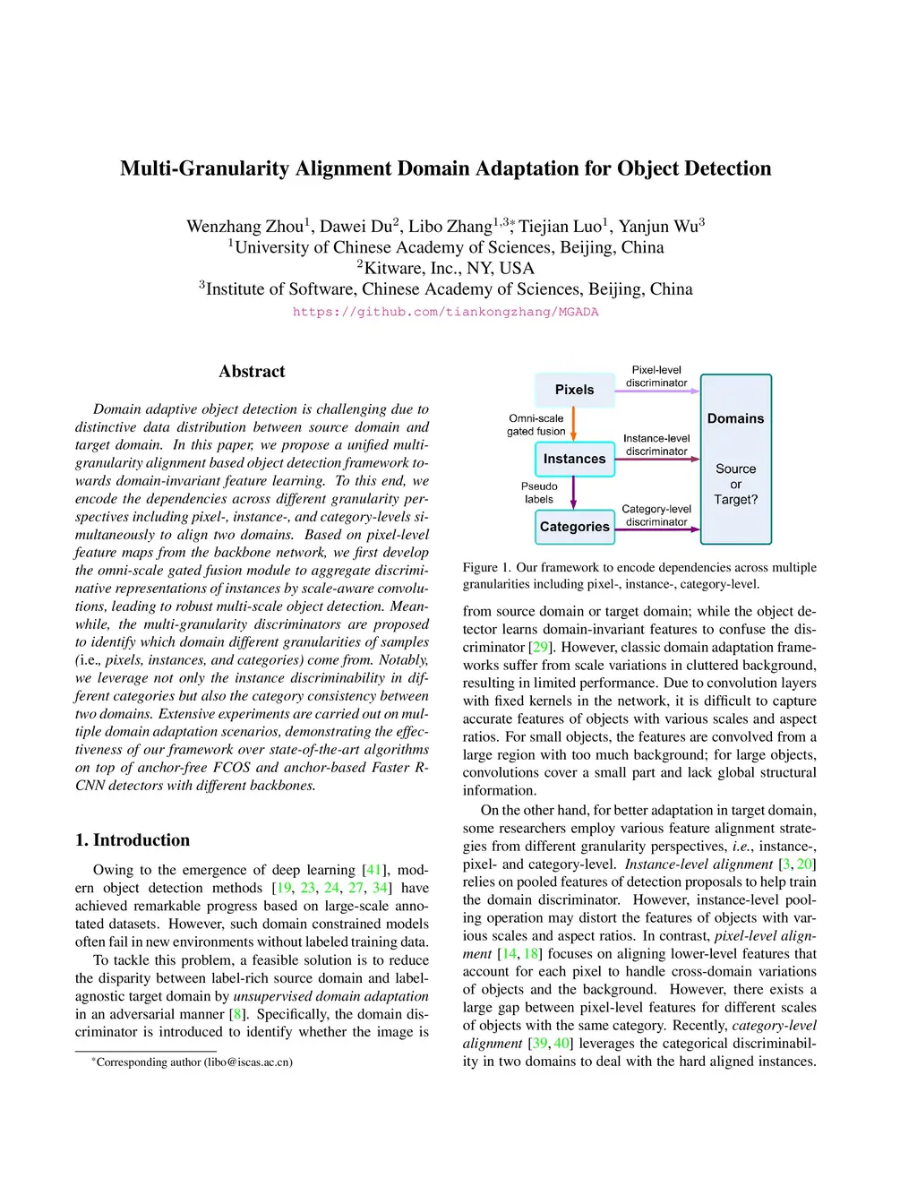Multi-Granularity Alignment Domain Adaptation for Object Detection