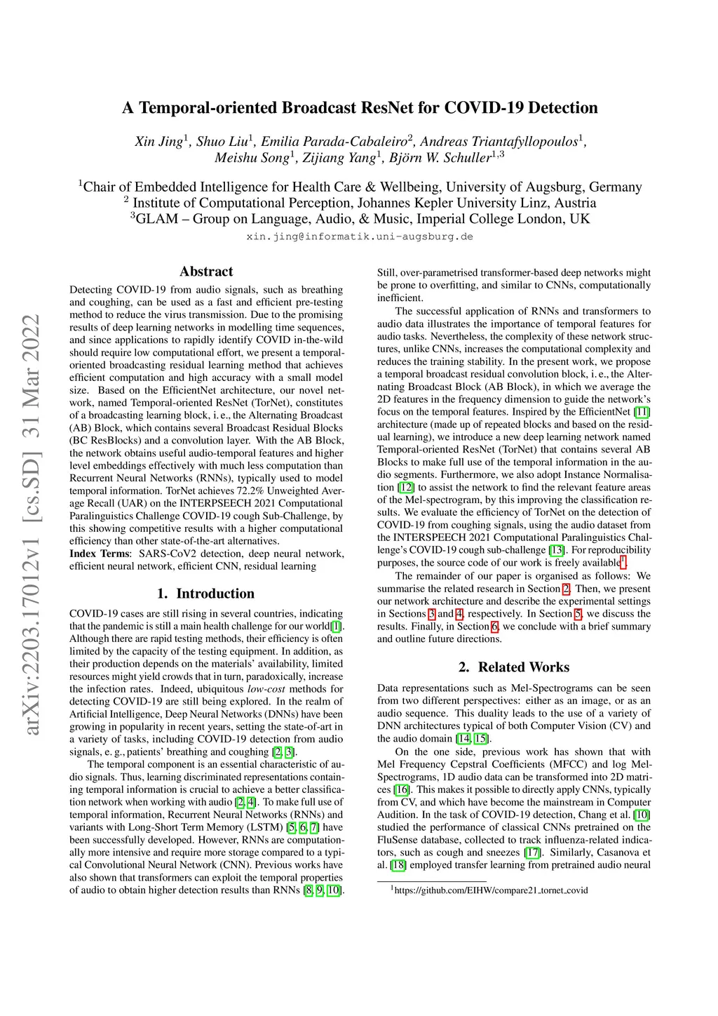 A Temporal-oriented Broadcast ResNet for COVID-19 Detection