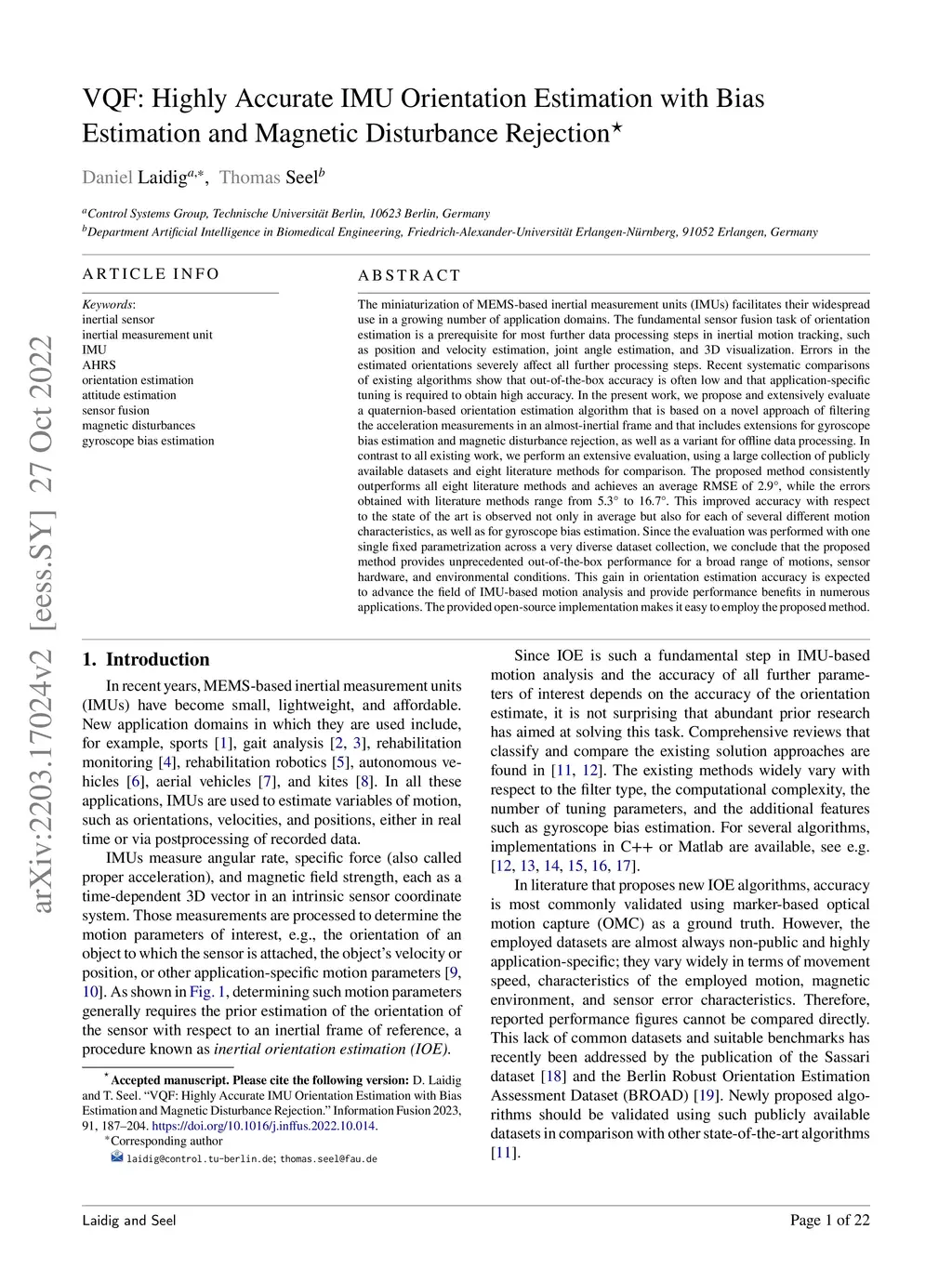 VQF: Highly Accurate IMU Orientation Estimation with Bias Estimation and