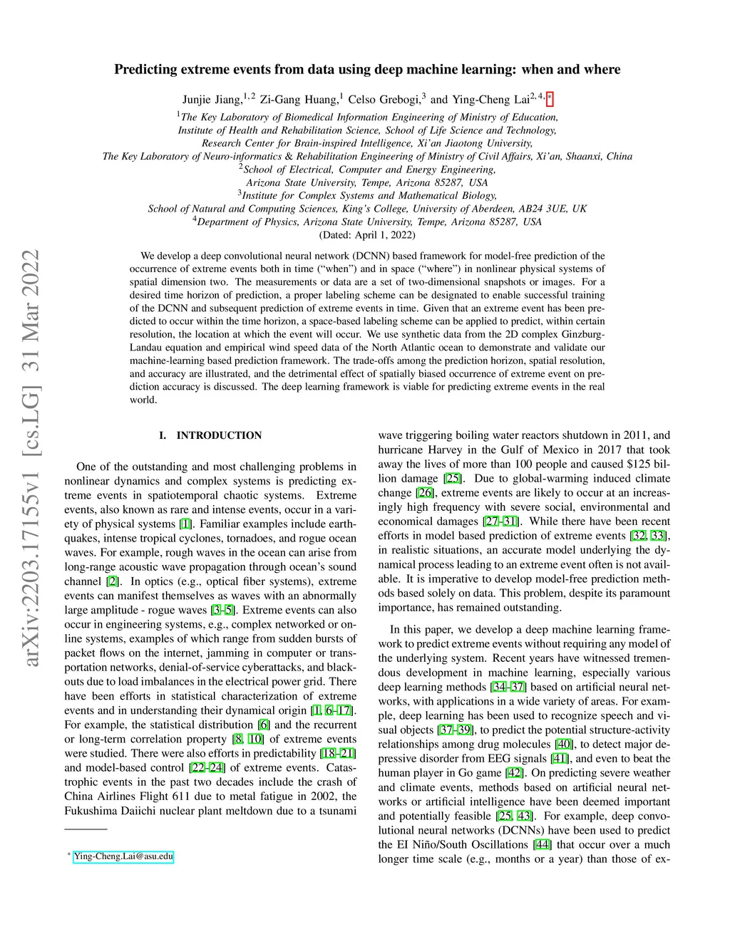 We develop a deep convolutional neural network (DCNN) based framework for model-free prediction of the occurrence of extreme events both in time ("when") and in space ("where") in nonlinear physical systems of spatial dimension two. The measurements or data are a set of two-dimensional snapshots or images. For a desired time horizon of prediction, a proper labeling scheme can be designated to enable successful training of the DCNN and subsequent prediction of extreme events in time. Given that an extreme event has been predicted to occur within the time horizon, a space-based labeling scheme can be applied to predict, within certain resolution, the location at which the event will occur. We use synthetic data from the 2D complex Ginzburg-Landau equation and empirical wind speed data of the North Atlantic ocean to demonstrate and validate our machine-learning based prediction framework. The trade-offs among the prediction horizon, spatial resolution, and accuracy are illustrated, and the detrimental effect of spatially biased occurrence of extreme event on prediction accuracy is discussed. The deep learning framework is viable for predicting extreme events in the real world.