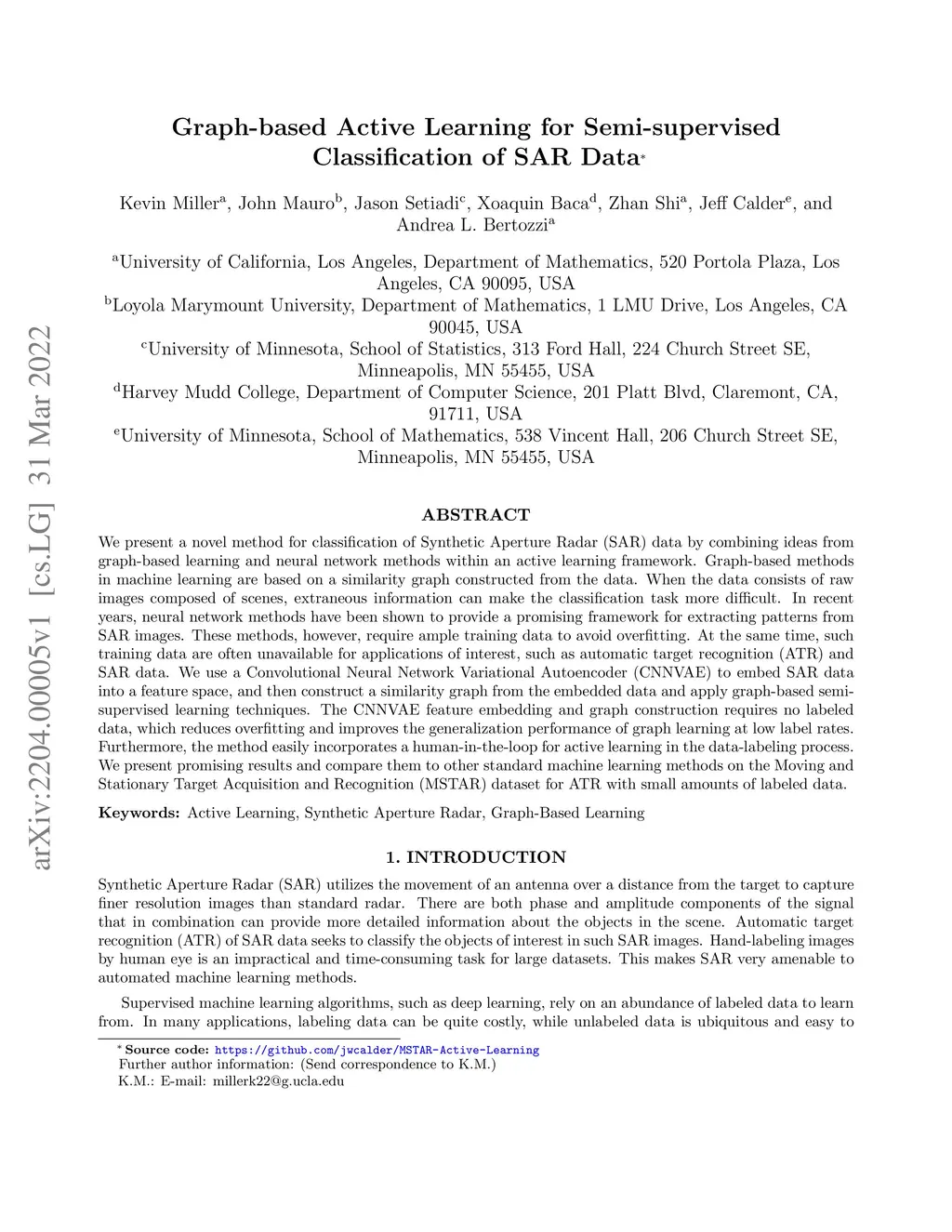 Graph-based Active Learning for Semi-supervised Classification of SAR