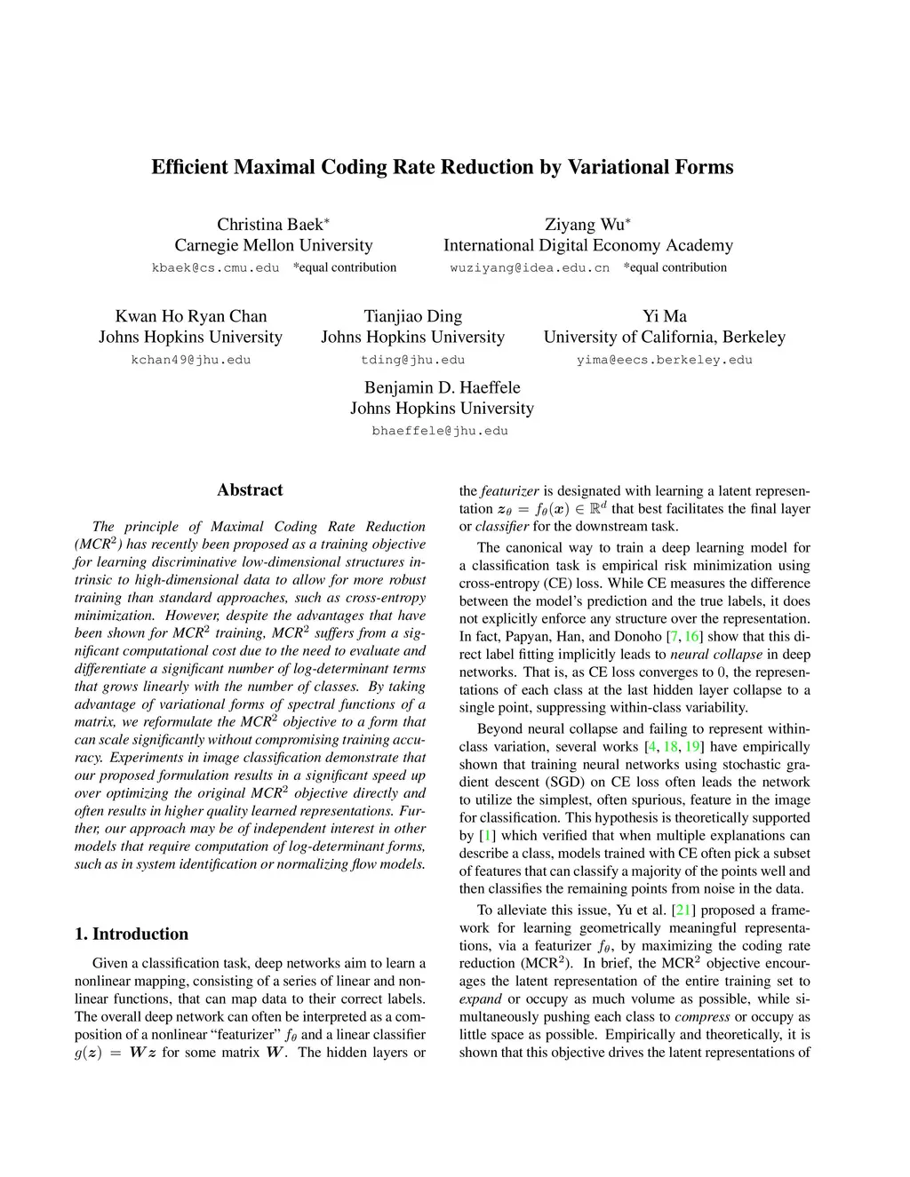Efficient Maximal Coding Rate Reduction by Variational Forms