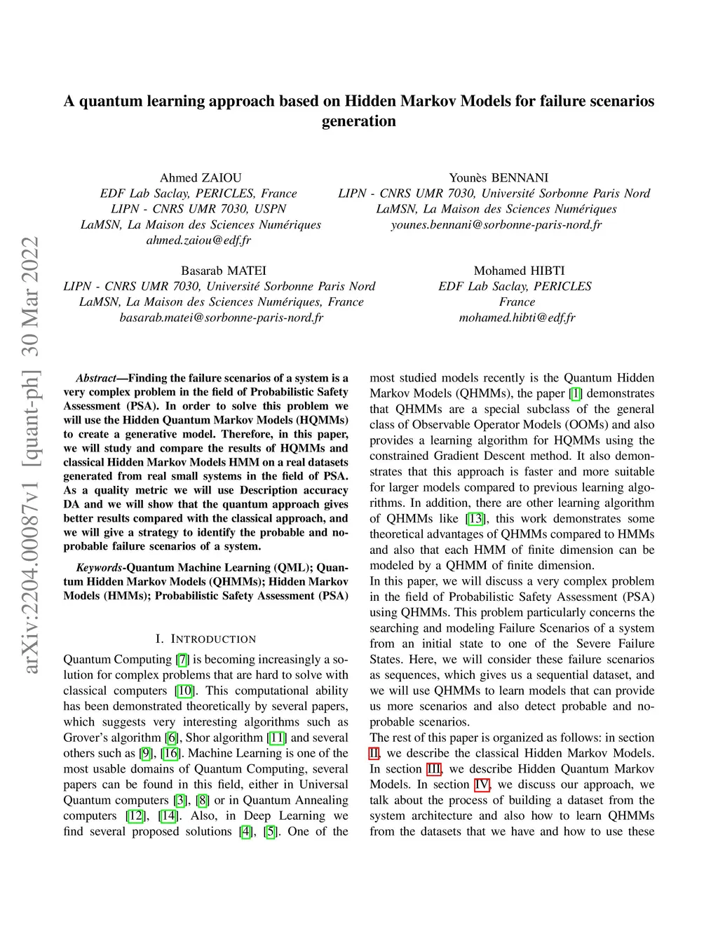 A quantum learning approach based on Hidden Markov Models for failure