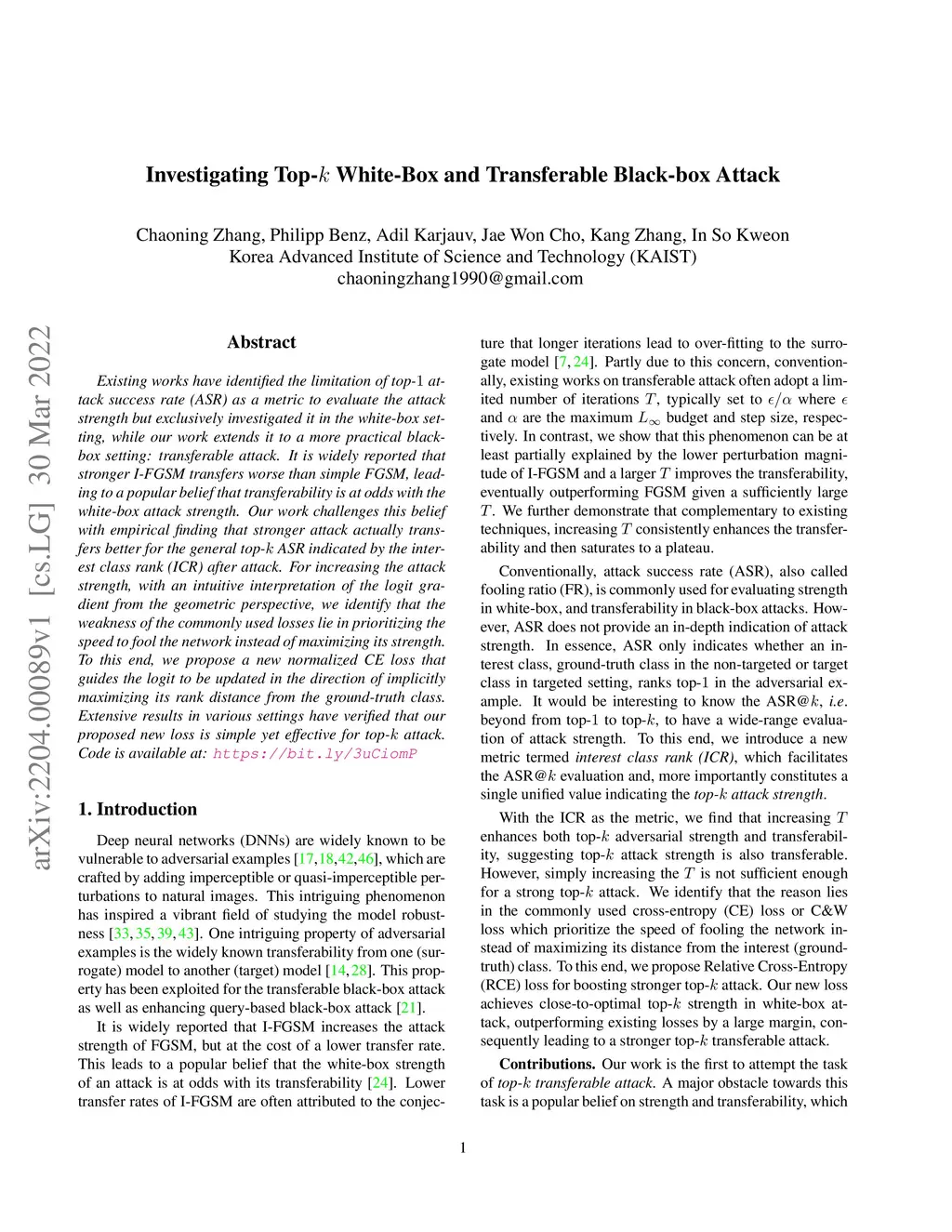 Investigating Top- White-Box and Transferable Black-box Attack