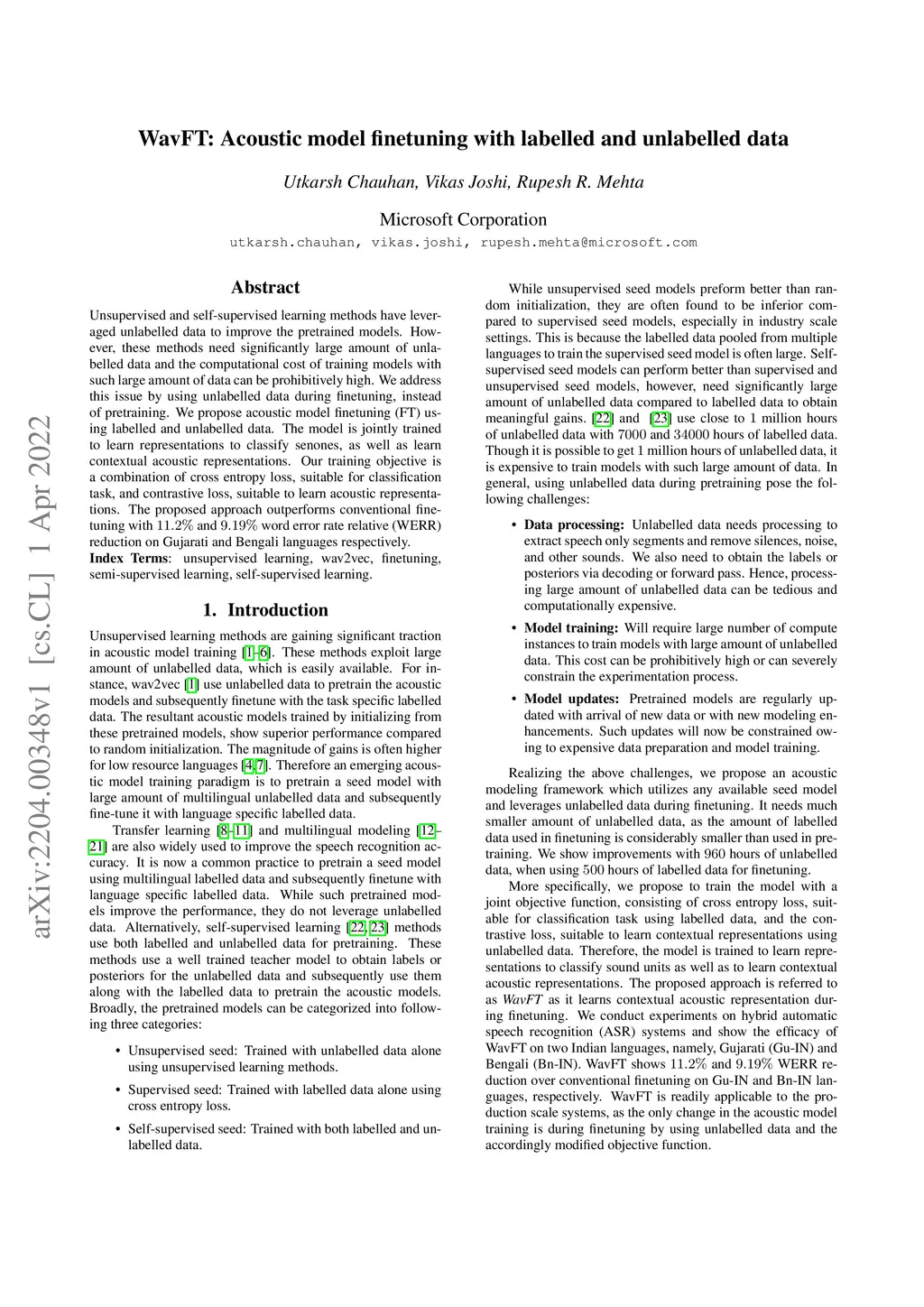 WavFT: Acoustic model finetuning with labelled and unlabelled data