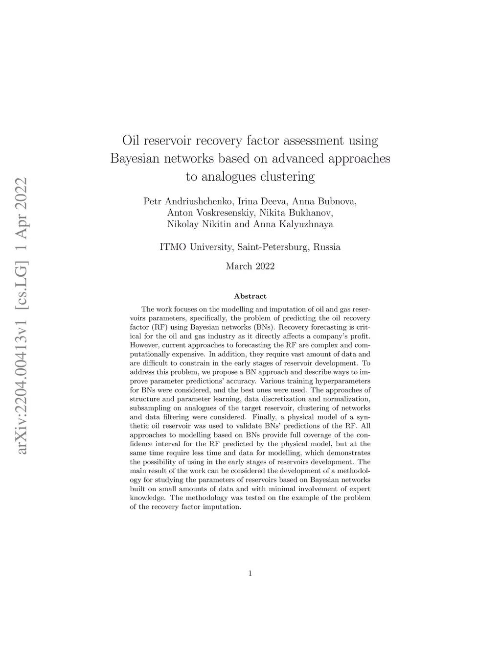 Oil reservoir recovery factor assessment using Bayesian networks based