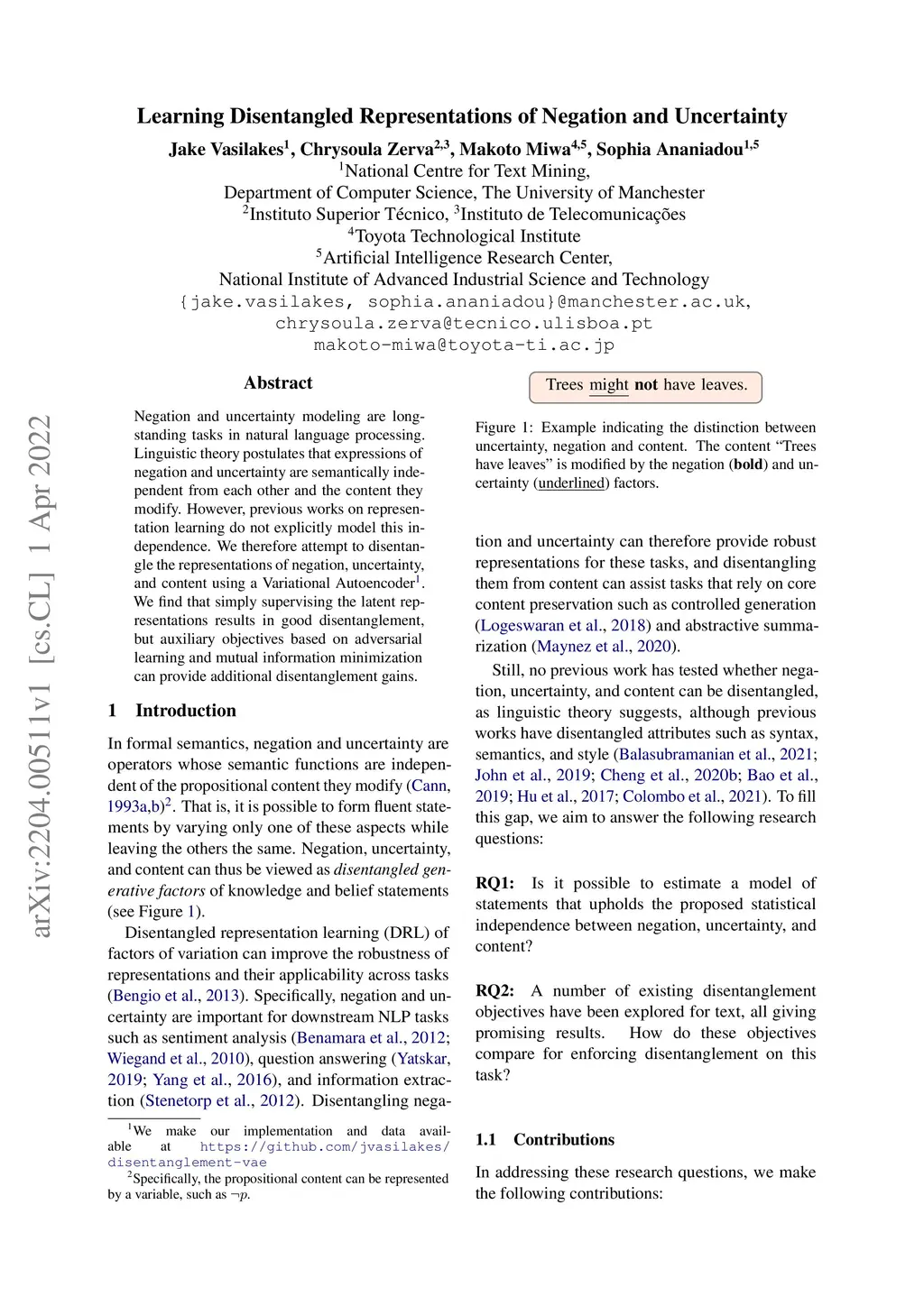 Learning Disentangled Representations of Negation and Uncertainty