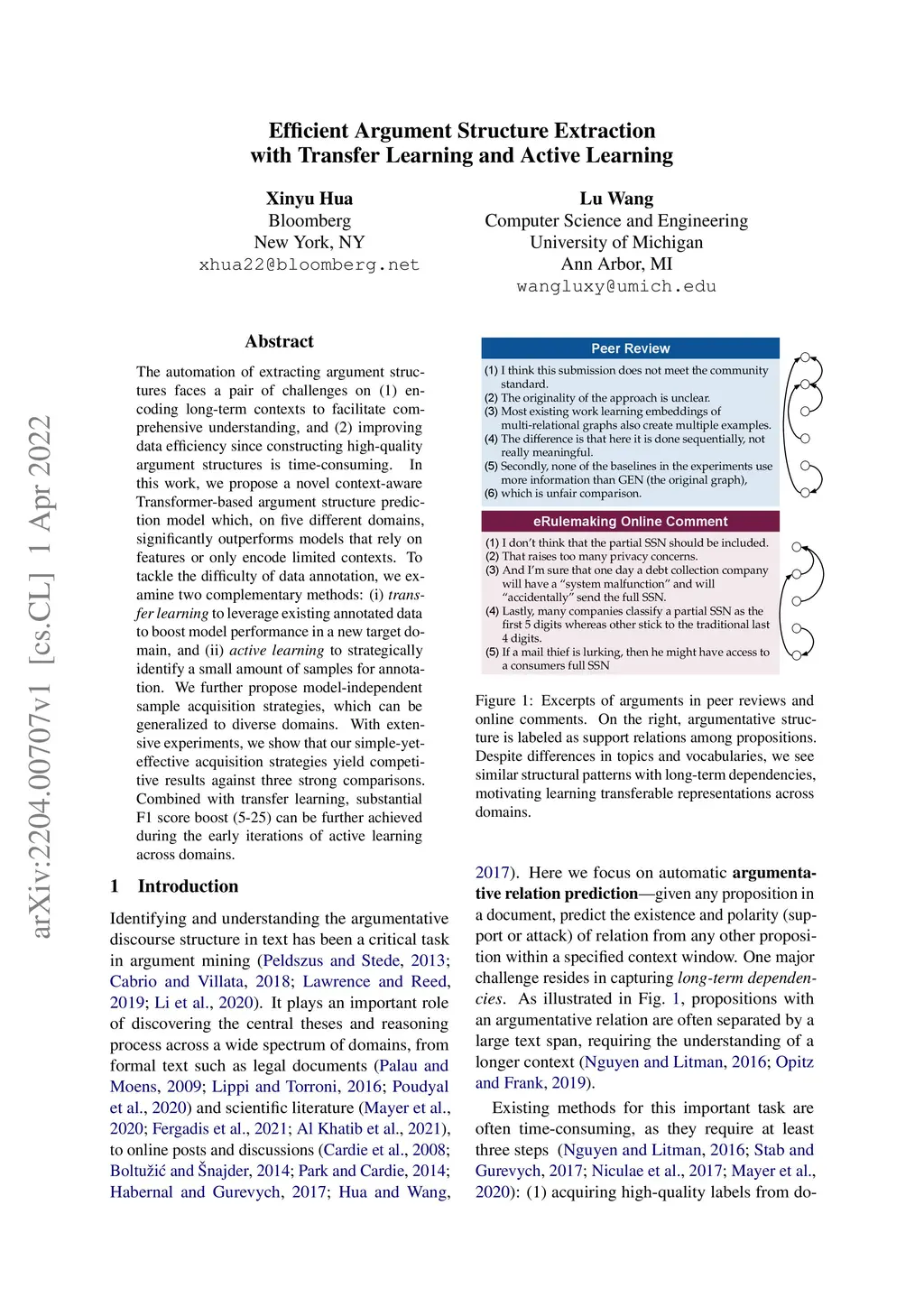Efficient Argument Structure Extraction with Transfer Learning and