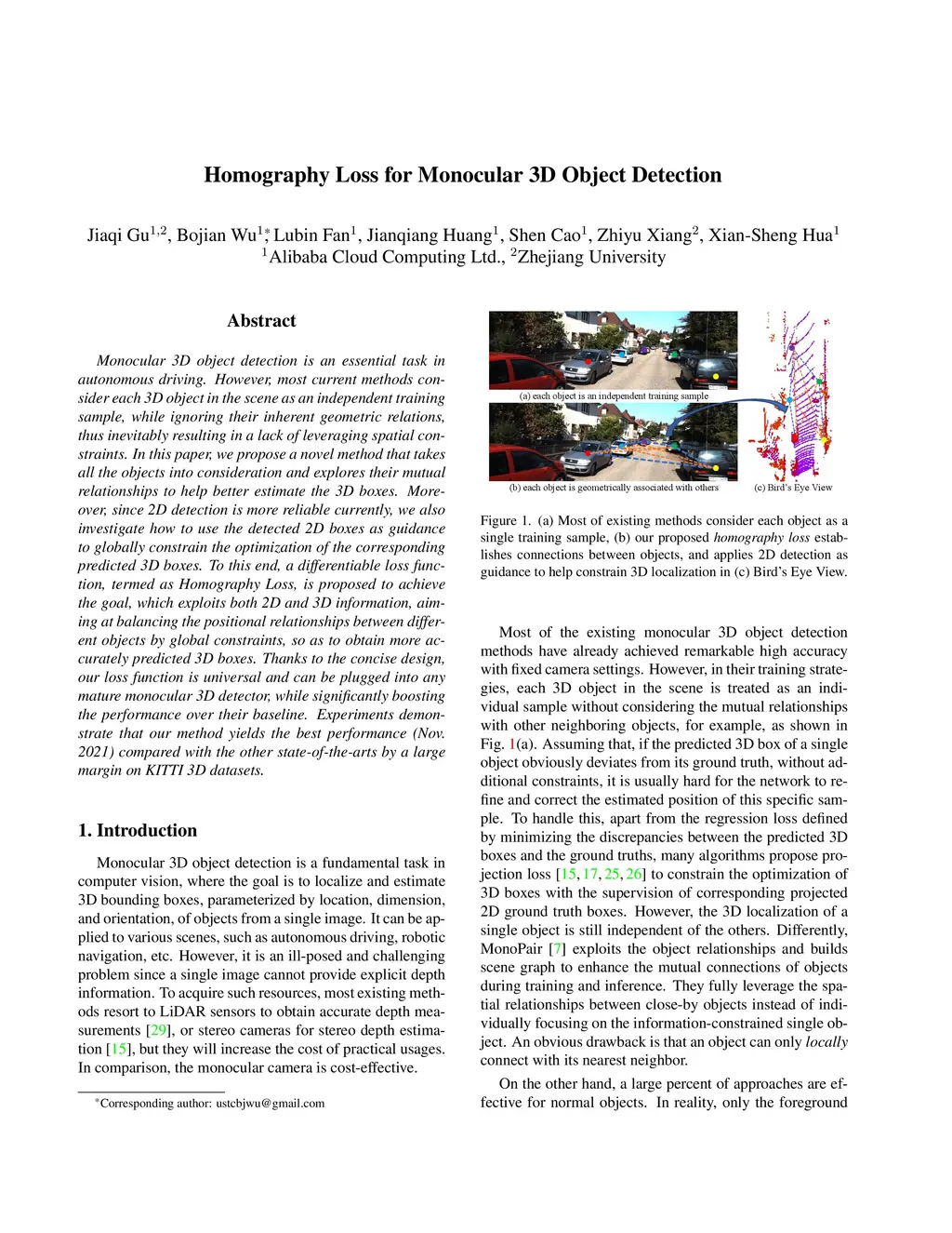 Homography Loss for Monocular 3D Object Detection