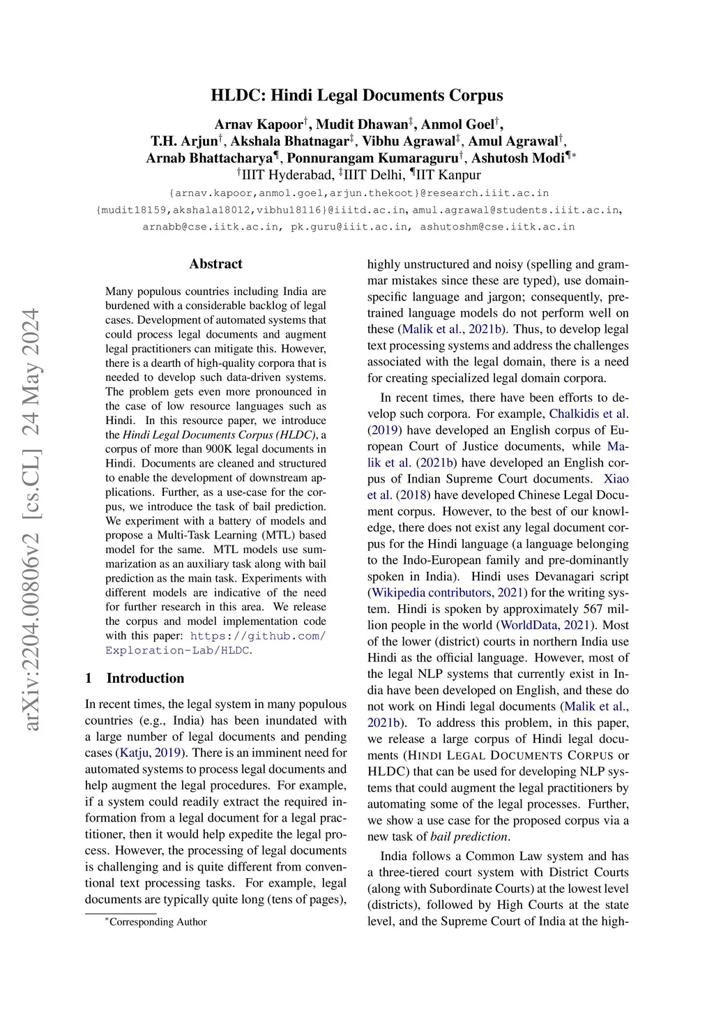 HLDC: Hindi Legal Documents Corpus