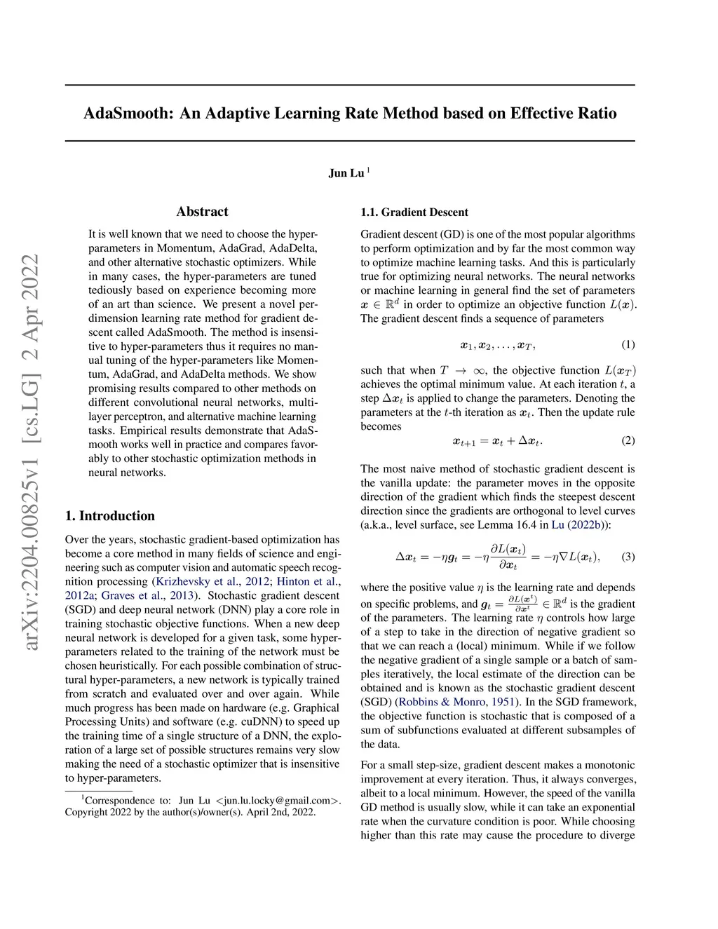 AdaSmooth: An Adaptive Learning Rate Method based on Effective Ratio