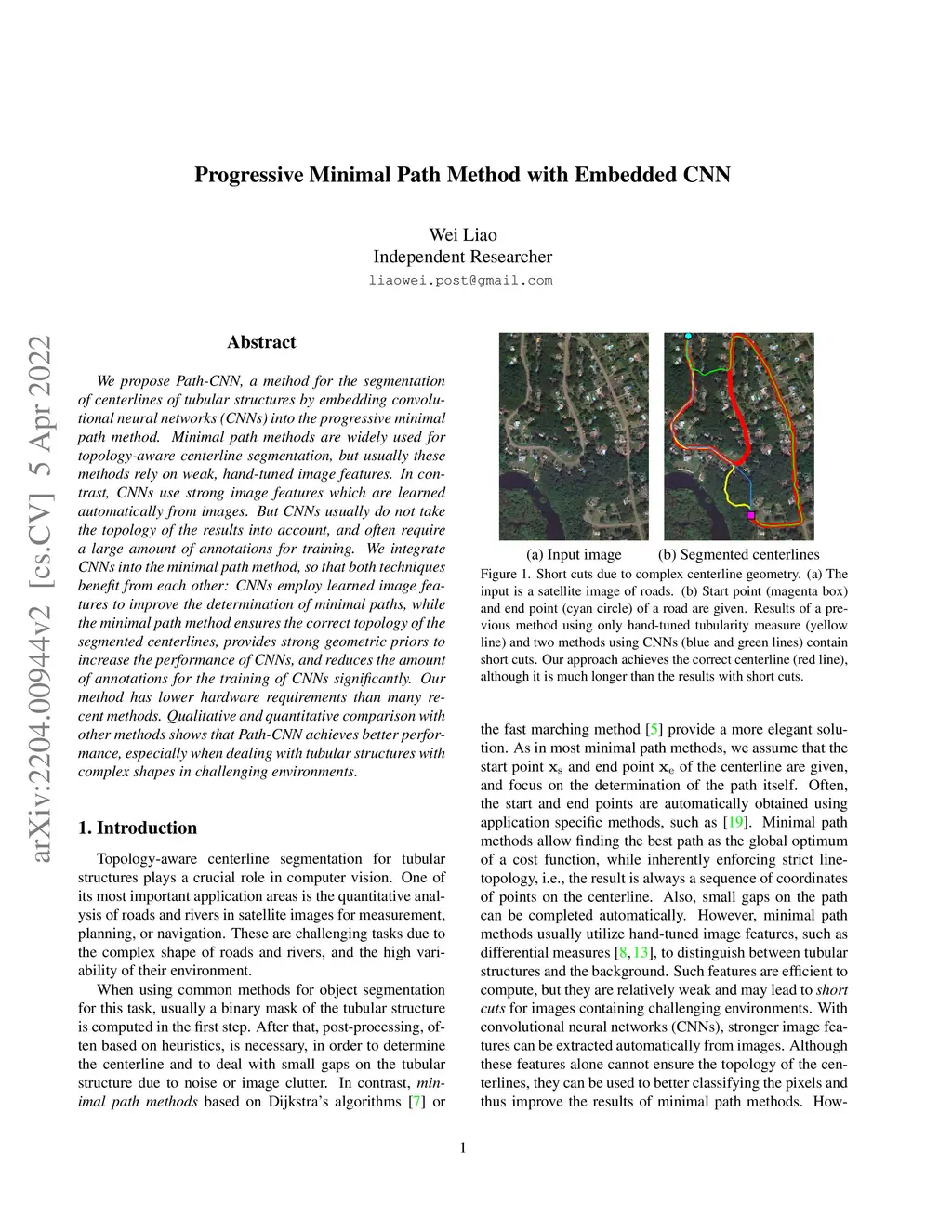We propose Path-CNN, a method for the segmentation of centerlines of tubular structures by embedding convolutional neural networks (CNNs) into the progressive minimal path method. Minimal path methods are widely used for topology-aware centerline segmentation, but usually these methods rely on weak, hand-tuned image features. In contrast, CNNs use strong image features which are learned automatically from images. But CNNs usually do not take the topology of the results into account, and often require a large amount of annotations for training. We integrate CNNs into the minimal path method, so that both techniques benefit from each other: CNNs employ learned image features to improve the determination of minimal paths, while the minimal path method ensures the correct topology of the segmented centerlines, provides strong geometric priors to increase the performance of CNNs, and reduces the amount of annotations for the training of CNNs significantly. Our method has lower hardware requirements than many recent methods. Qualitative and quantitative comparison with other methods shows that Path-CNN achieves better performance, especially when dealing with tubular structures with complex shapes in challenging environments.